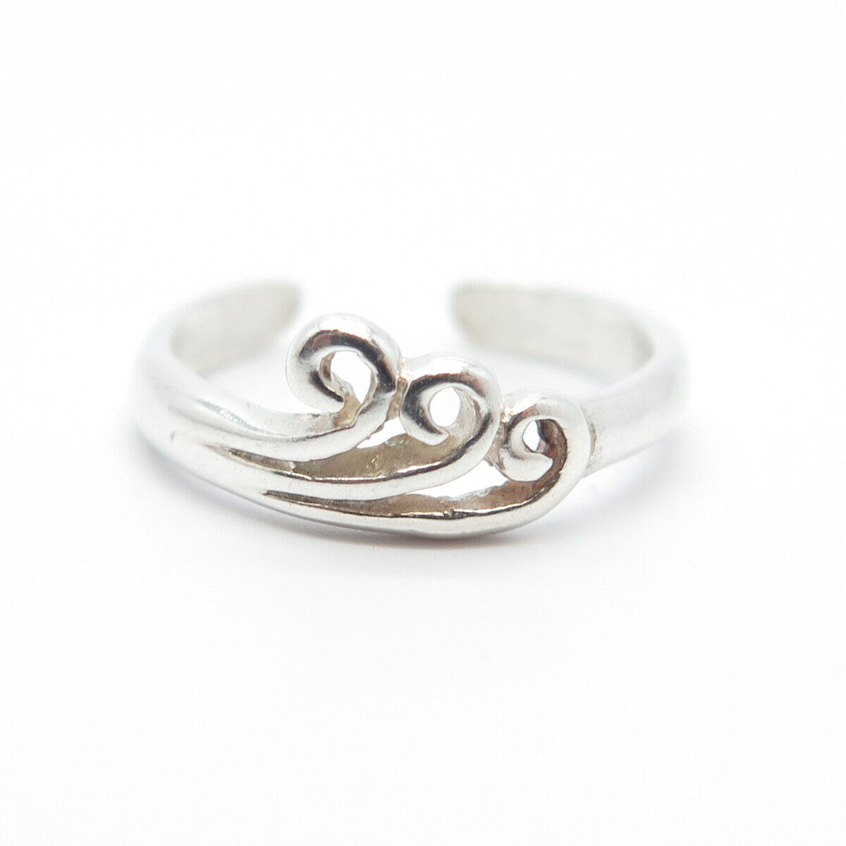 925 Sterling Silver Vintage Swirl Adjustable Toe Ring Size 3