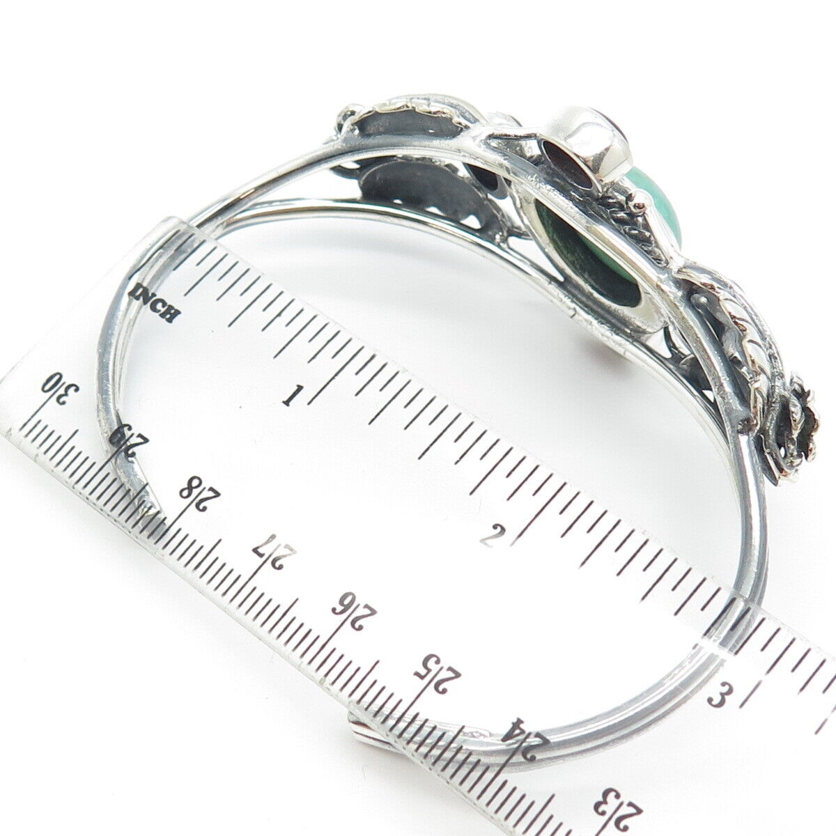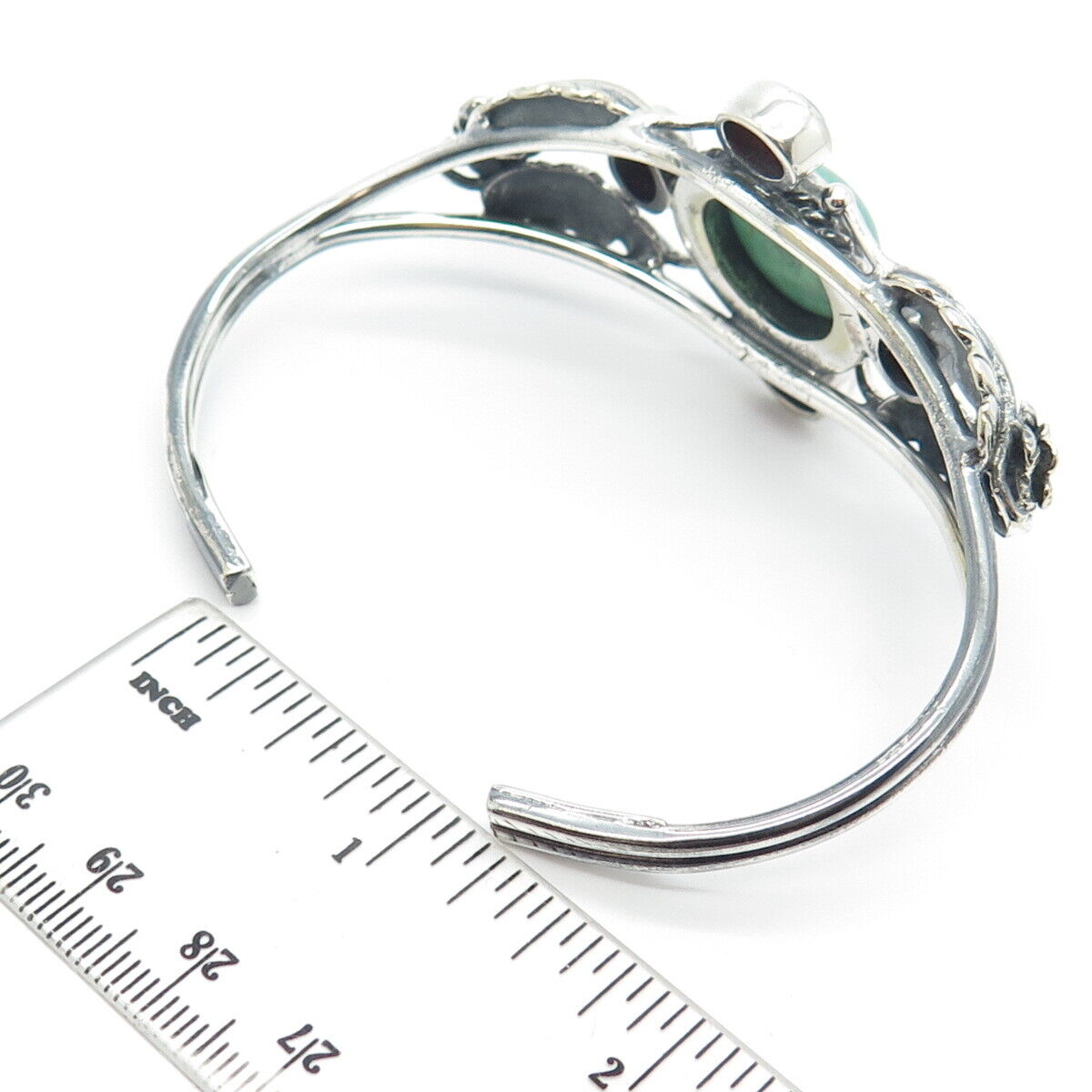 925 Sterling Silver Vintage Turquoise & Carnelian Gem Leaf Cuff Bracelet 7.25"