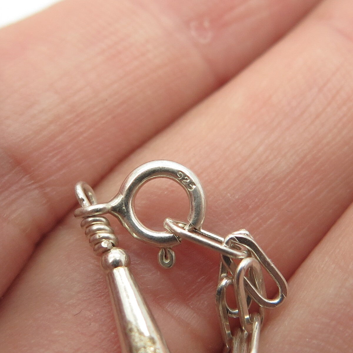 925 Sterling Silver Vintage White Green Beads 5-Row Liquid Chain Necklace 12-18"