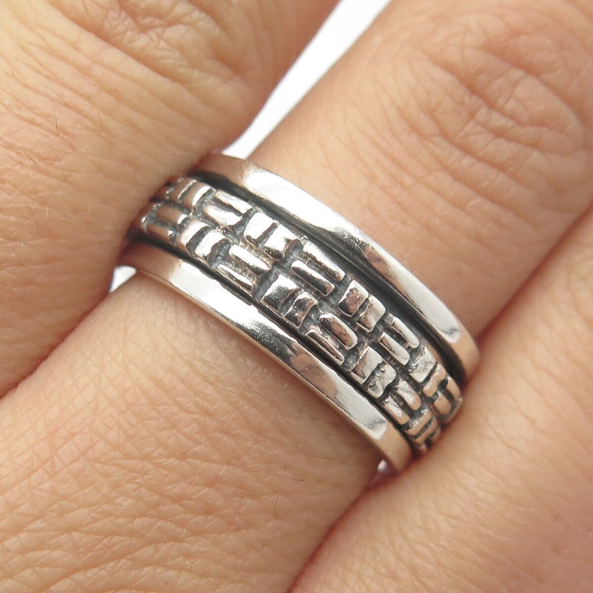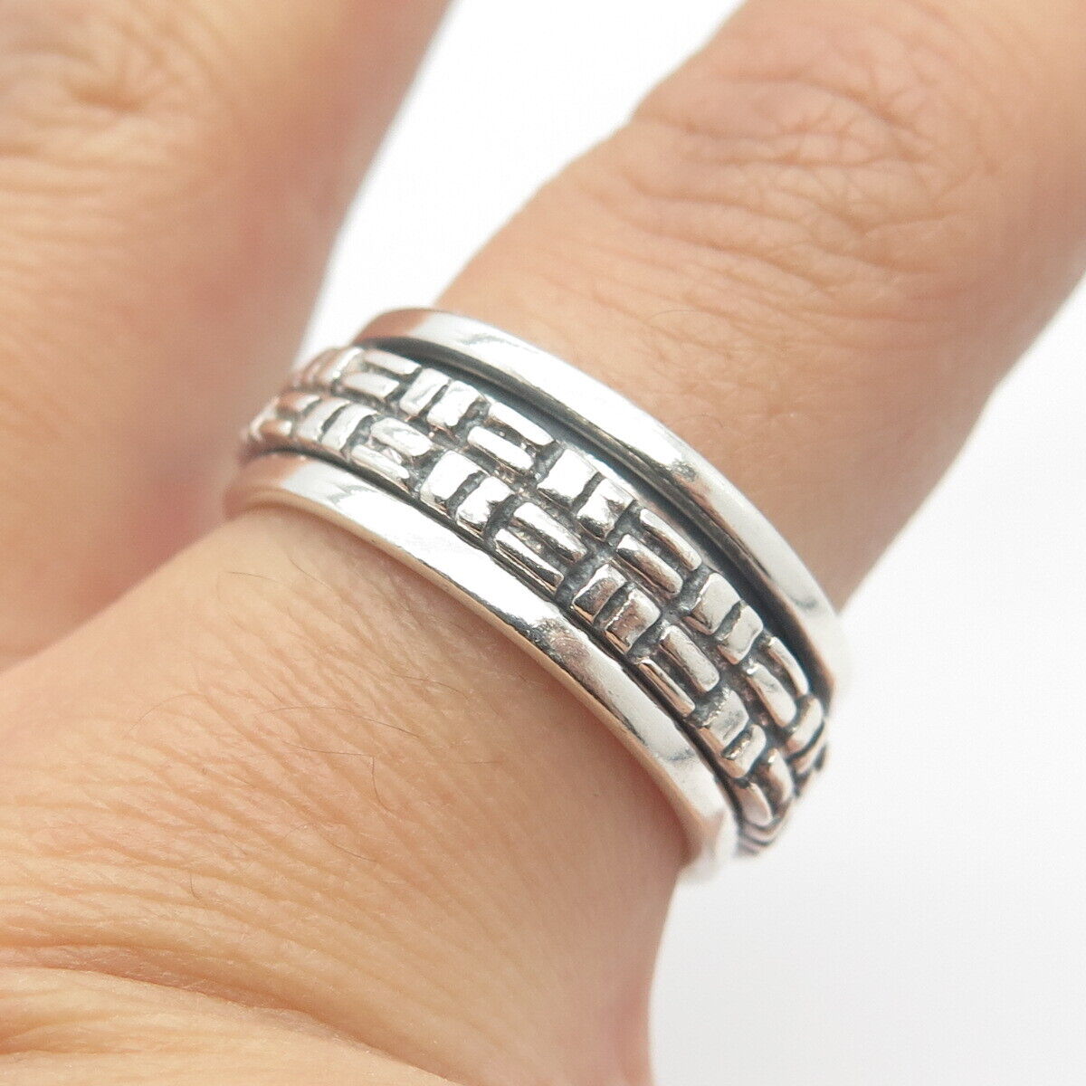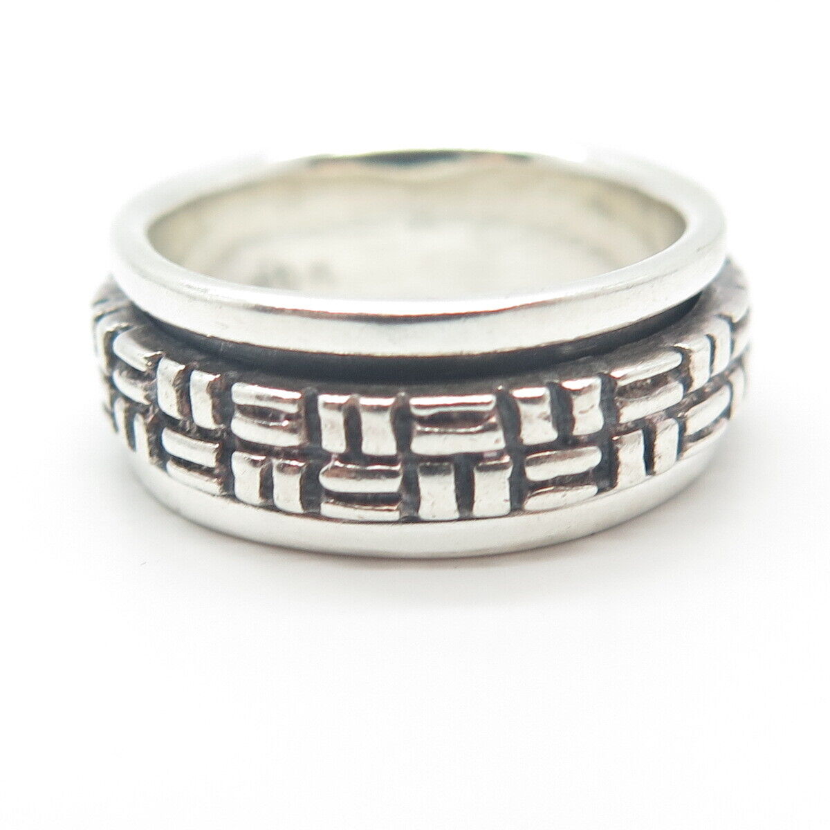 925 Sterling Silver Vintage Woven Rotating Band Ring Size 5.75