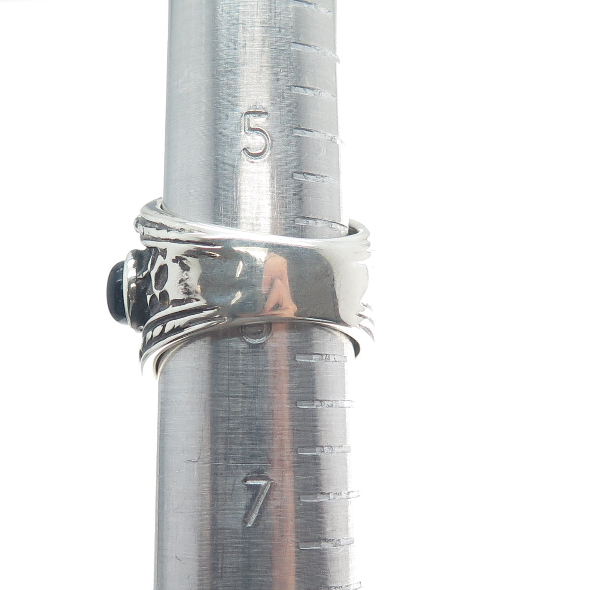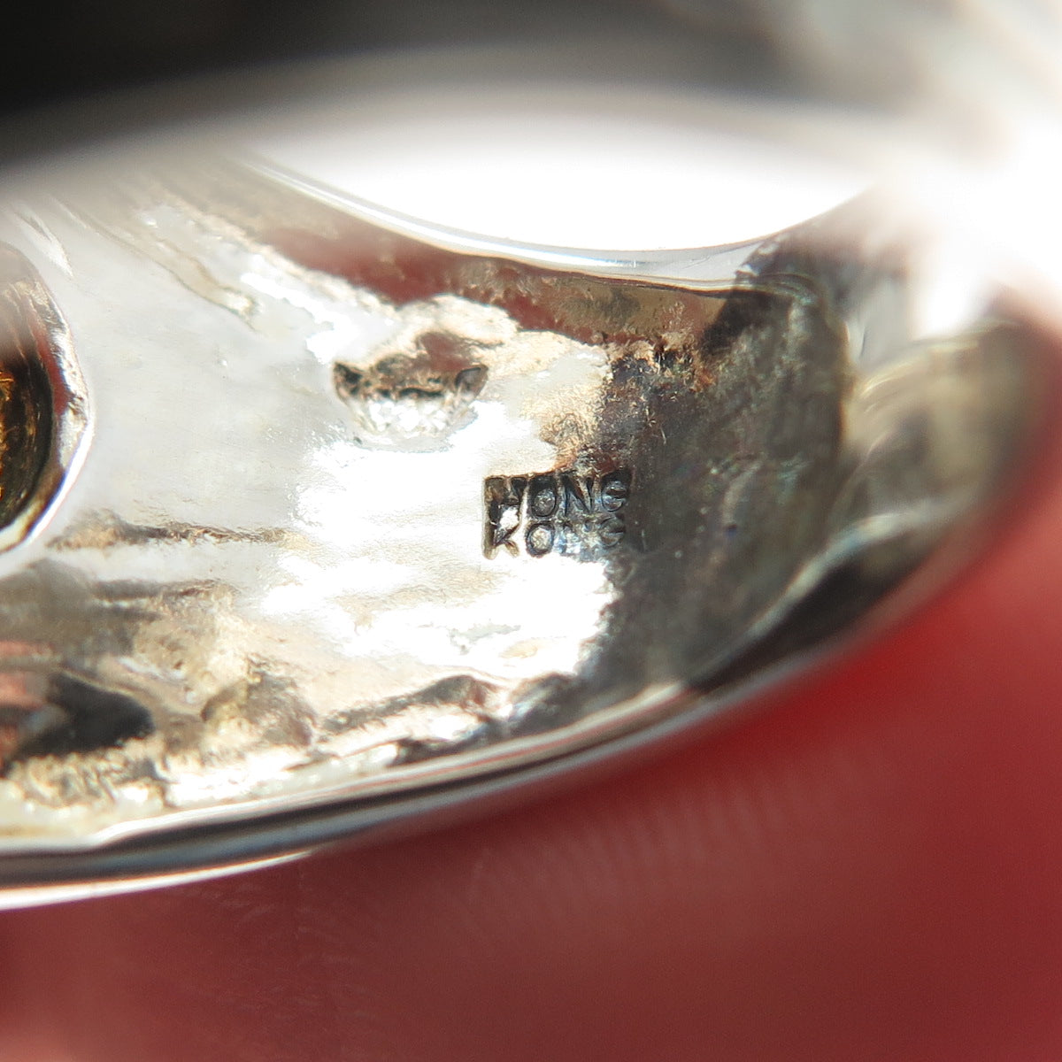 925 Sterling Silver Vintage WW Hong Kong Real Red Jade & Black Onyx Ring Size 6