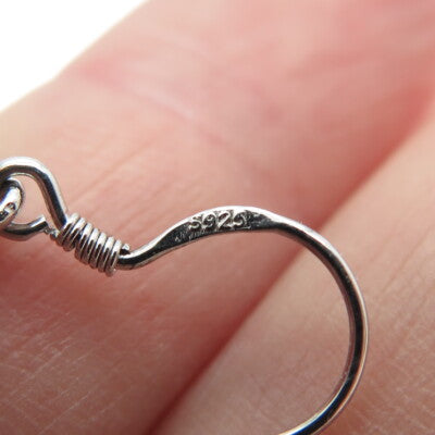 925 Sterling Silver White & Blue C Z Cross Dangling Hook Earrings