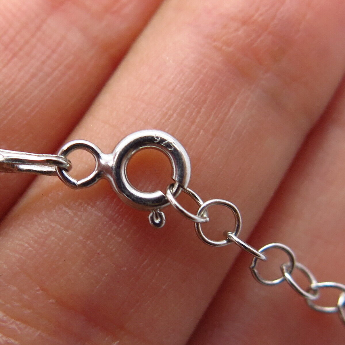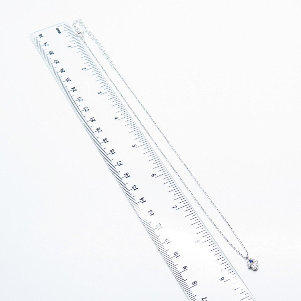 925 Sterling Silver White & Blue C Z Hamsa Rolo Chain Necklace 18"