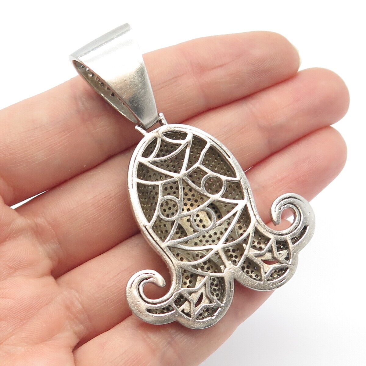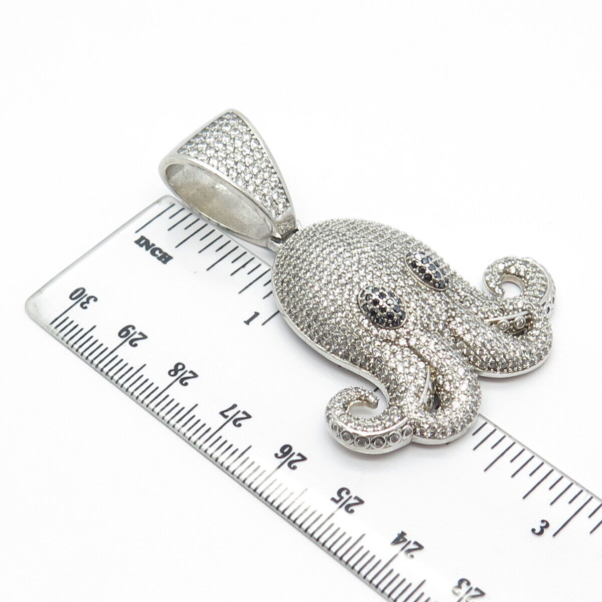 925 Sterling Silver White & Blue C Z Octopus Pendant