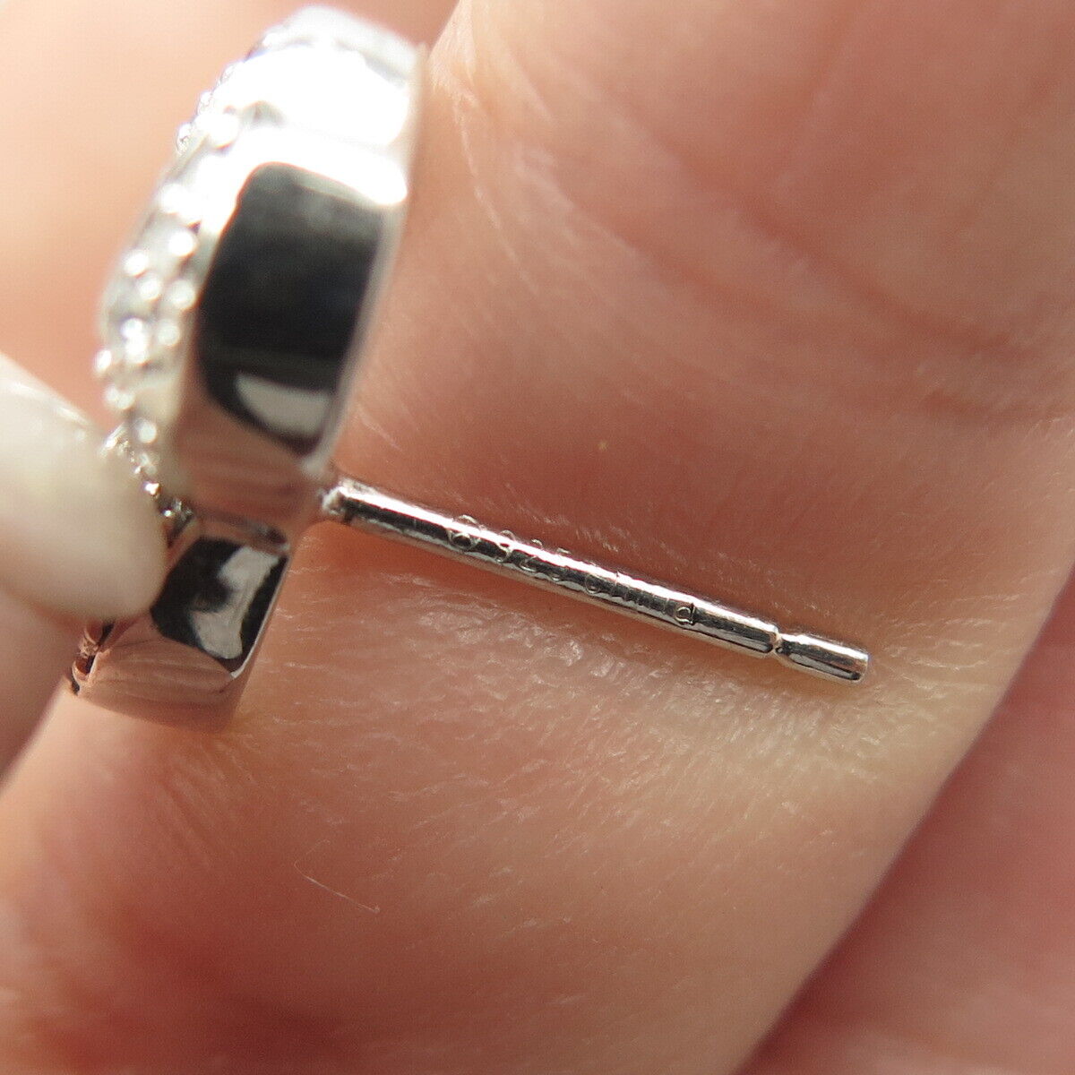 925 Sterling Silver White C Z Open Heart Stud Earrings