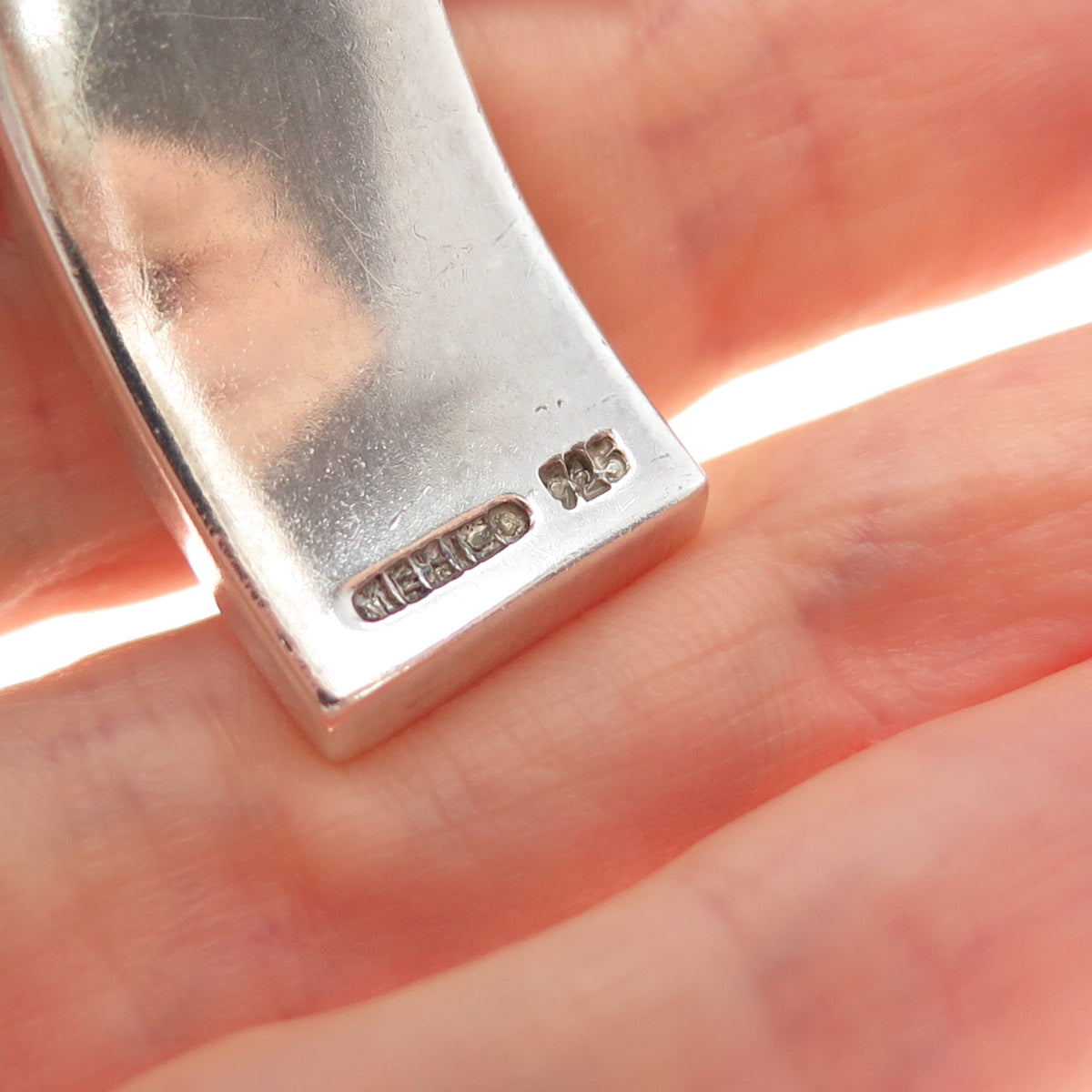 925 Sterling Vintage AC Mexico Real Turquoise Modernist Adjustable Bracelet 7"