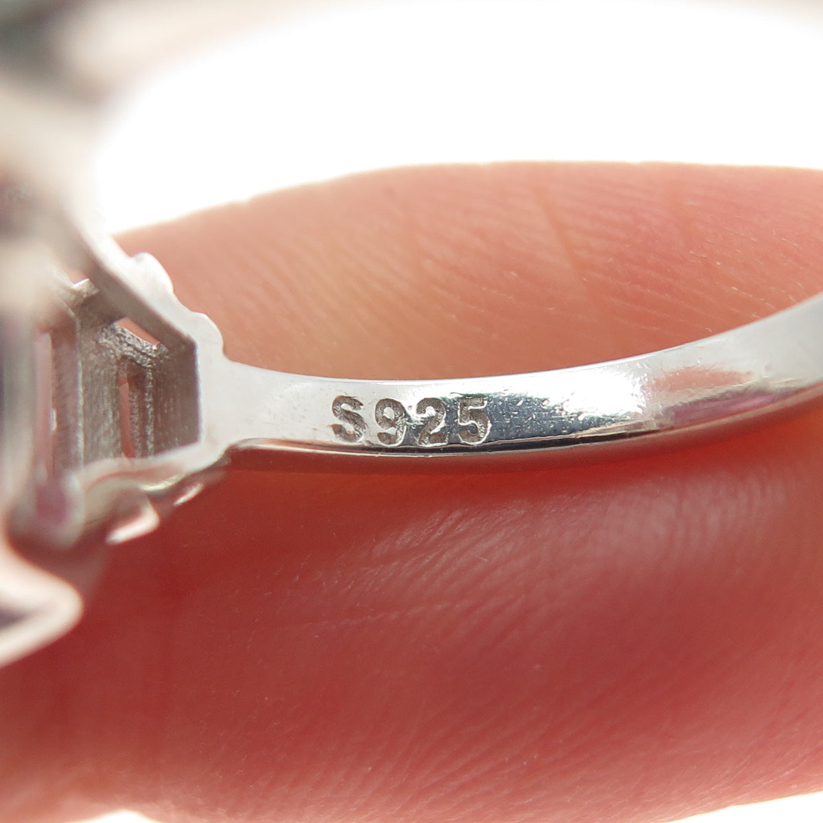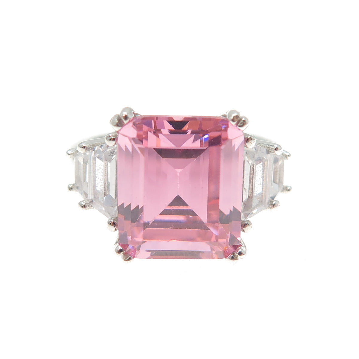 925 Sterling Vintage Emerald & Tapered Baguette-Cut Pink White C Z Ring Size 5.5