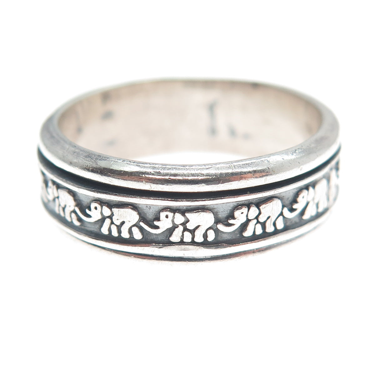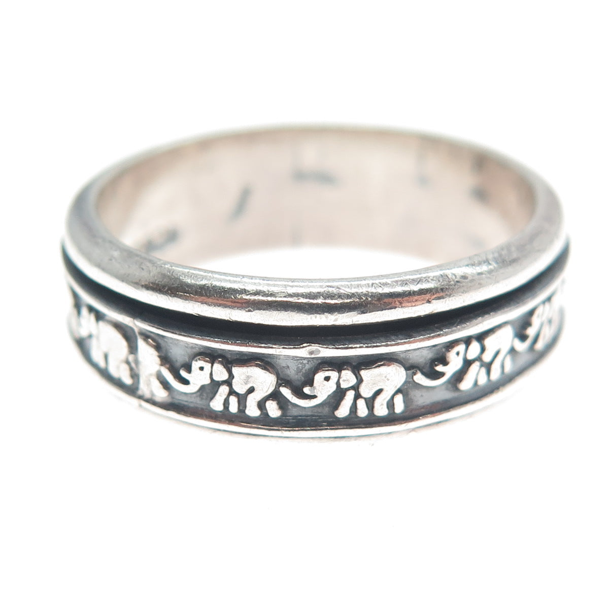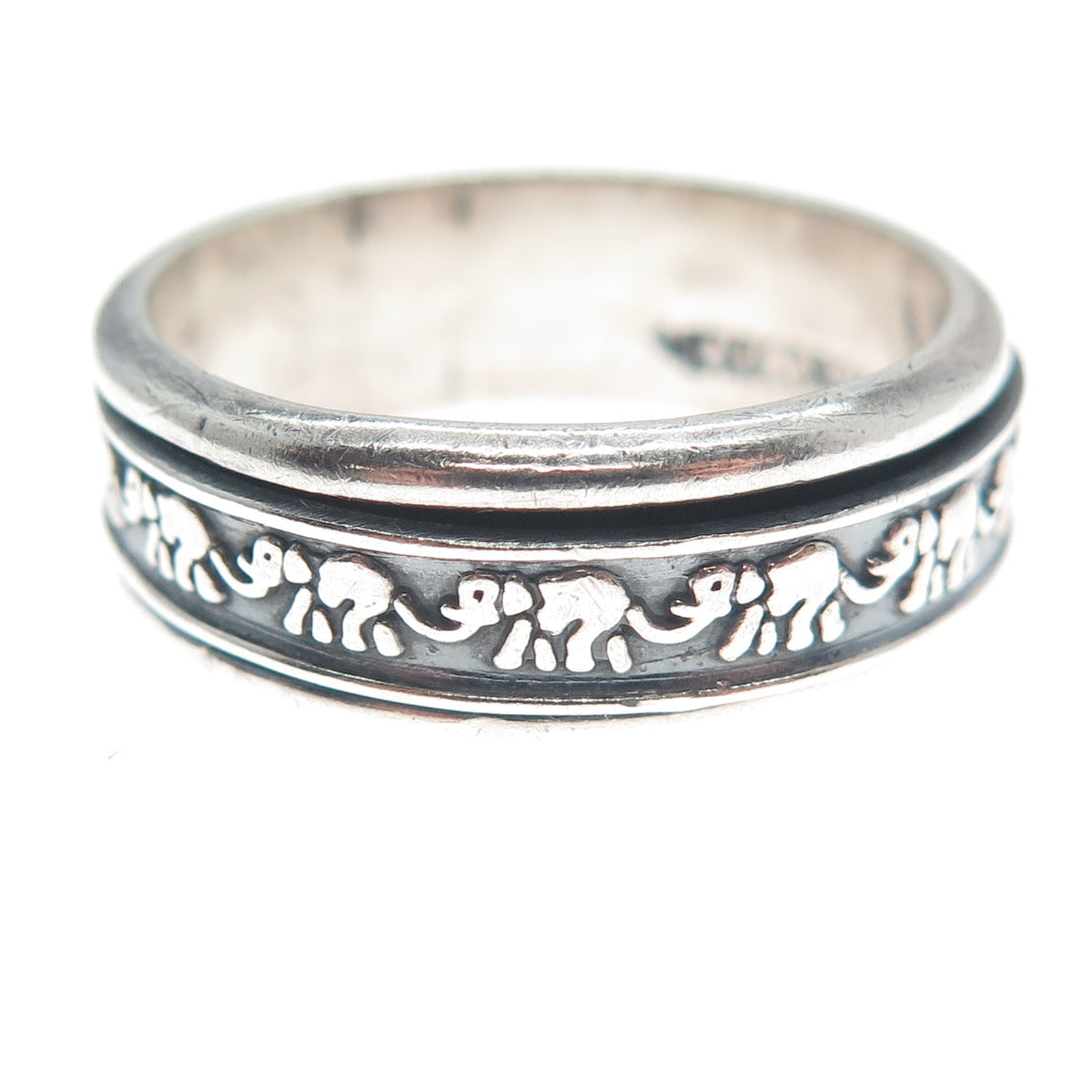 925 Sterling Vintage Mexico Elephant Oxidized Rotating Band Ring Size 10.5