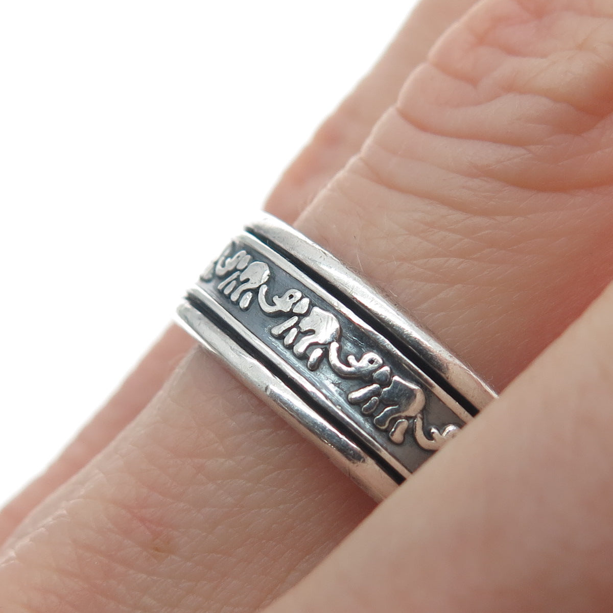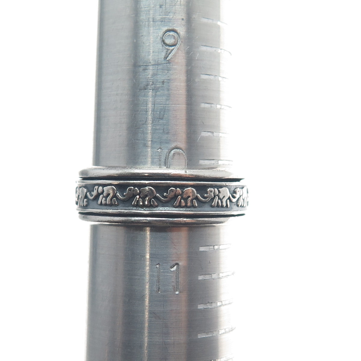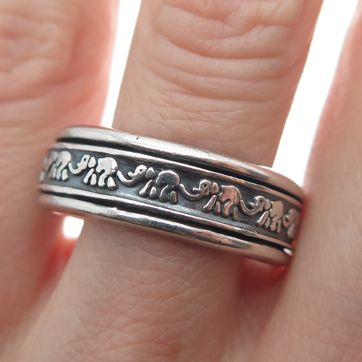 925 Sterling Vintage Mexico Elephant Oxidized Rotating Band Ring Size 10.5
