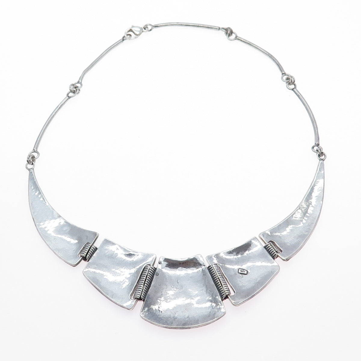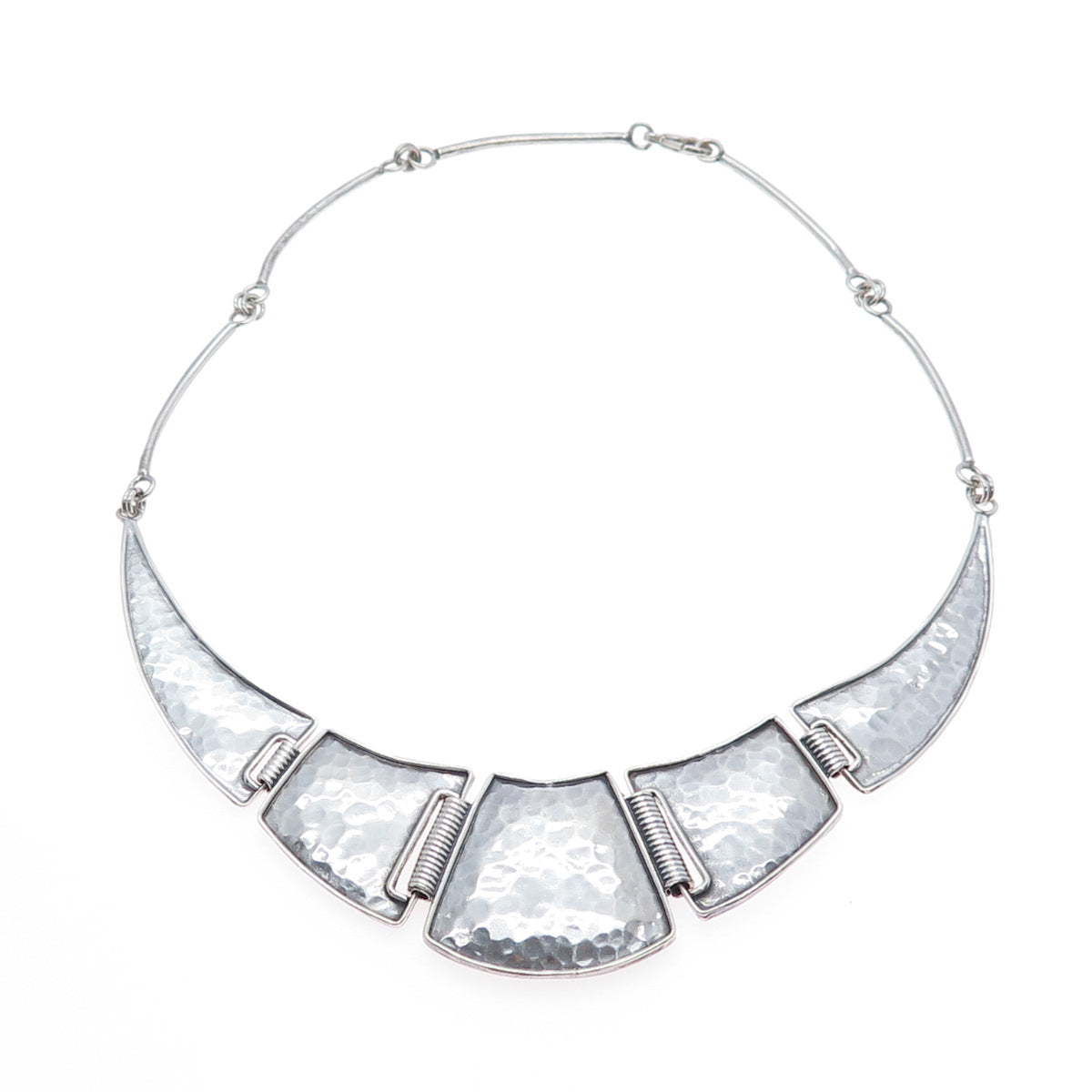 925 Sterling Vintage Modernist Hammered Centerpiece Bar Chain Necklace 16"