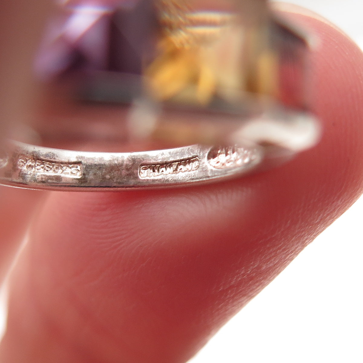 925 Sterling Vintage Real Amethyst Blue Topaz Peridot Citrine Garnet Ring Size 6