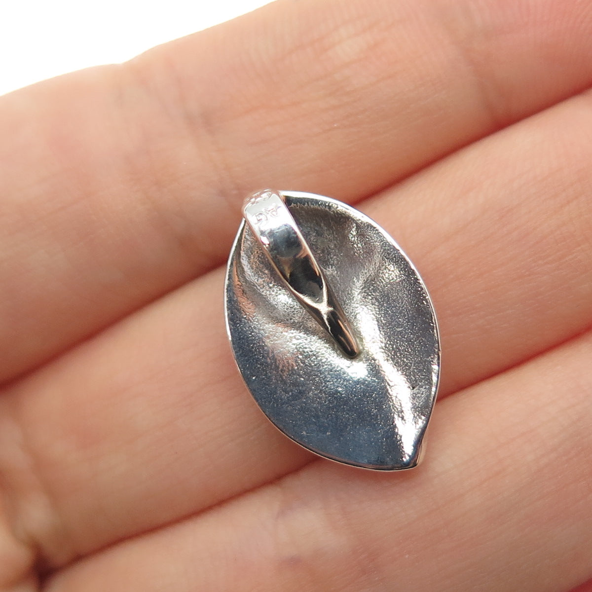 925 Sterling Vintage Real MOP Black Onyx & C Z Petal Mini Slide Charm Pendant