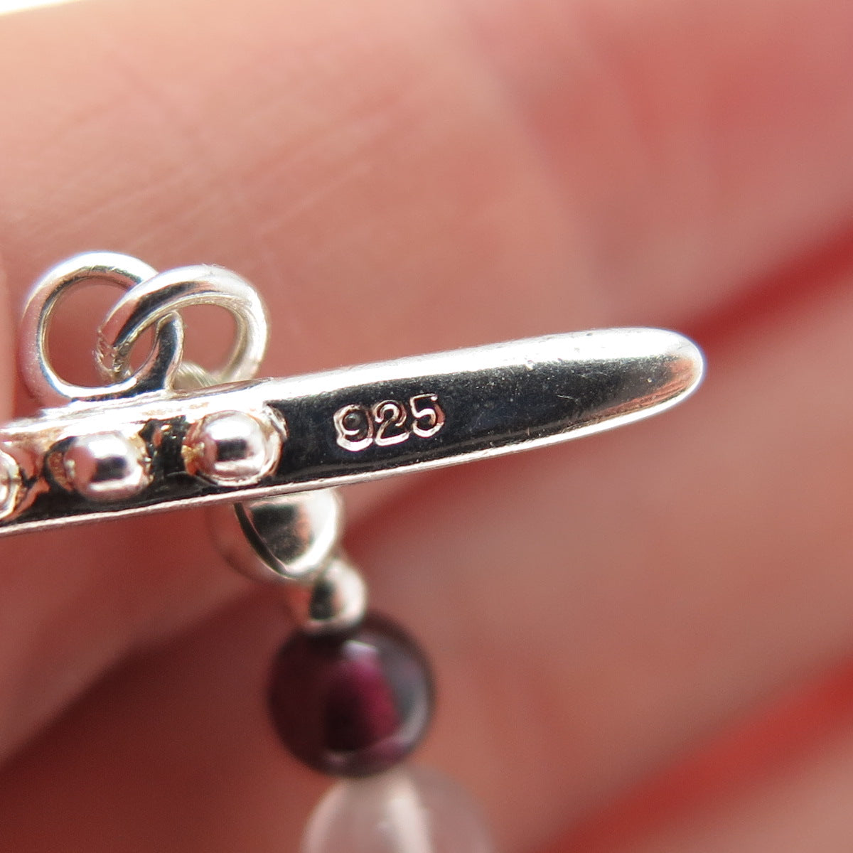 925 Sterling Vintage Rose & Cherry Quartz Tourmaline Beaded Chain Necklace 22"