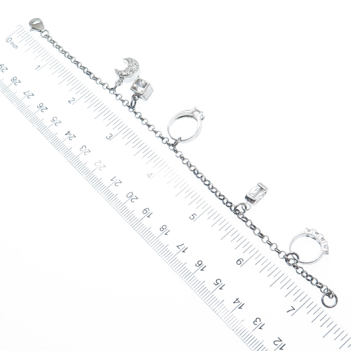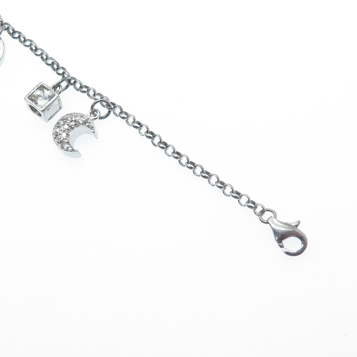 925 Sterling Vintage Round & Princess-Cut C Z Wedding Charms Rolo Bracelet 7.25"