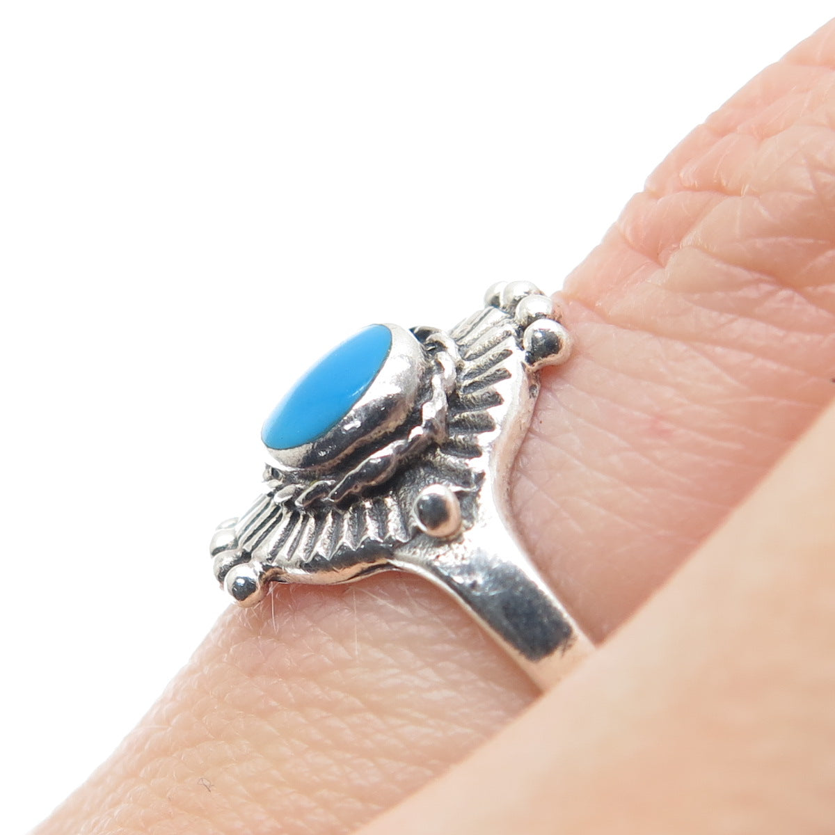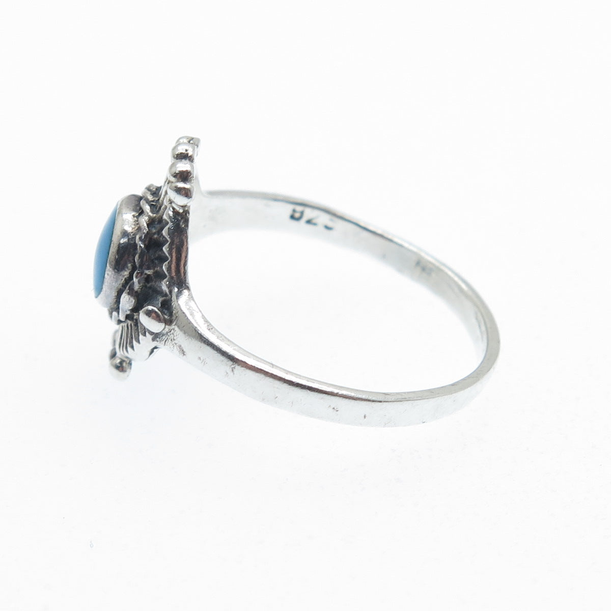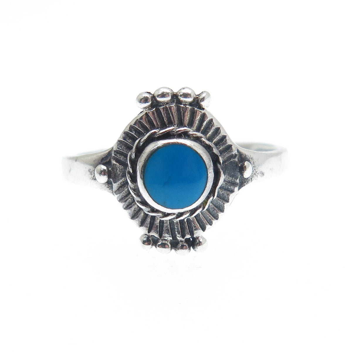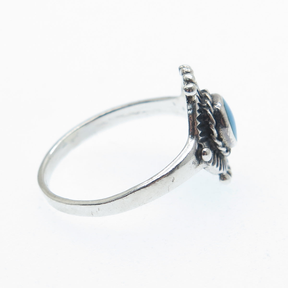 925 Sterling Vintage Southwestern Real Bisbee Turquoise Oxidized Ring Size 5.5