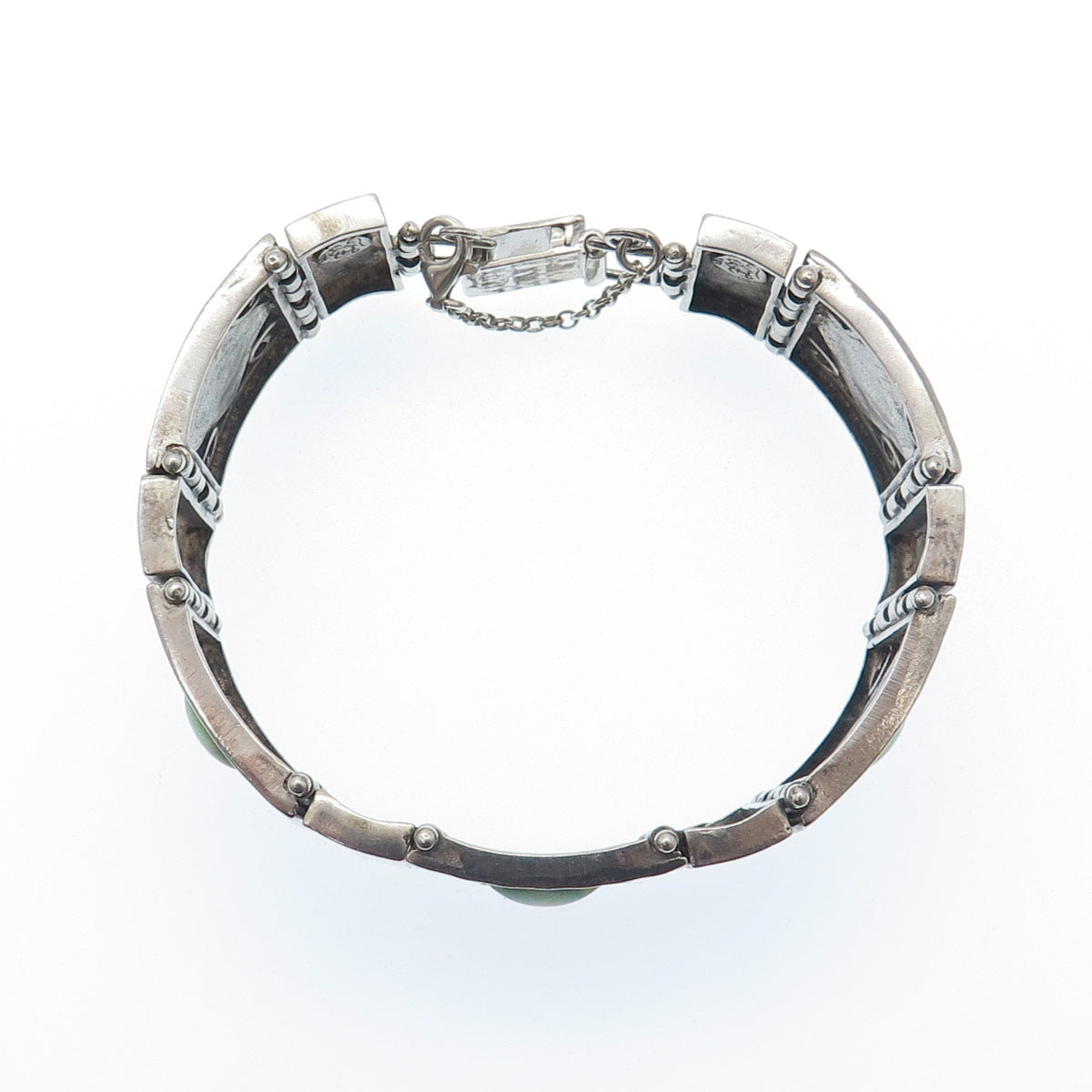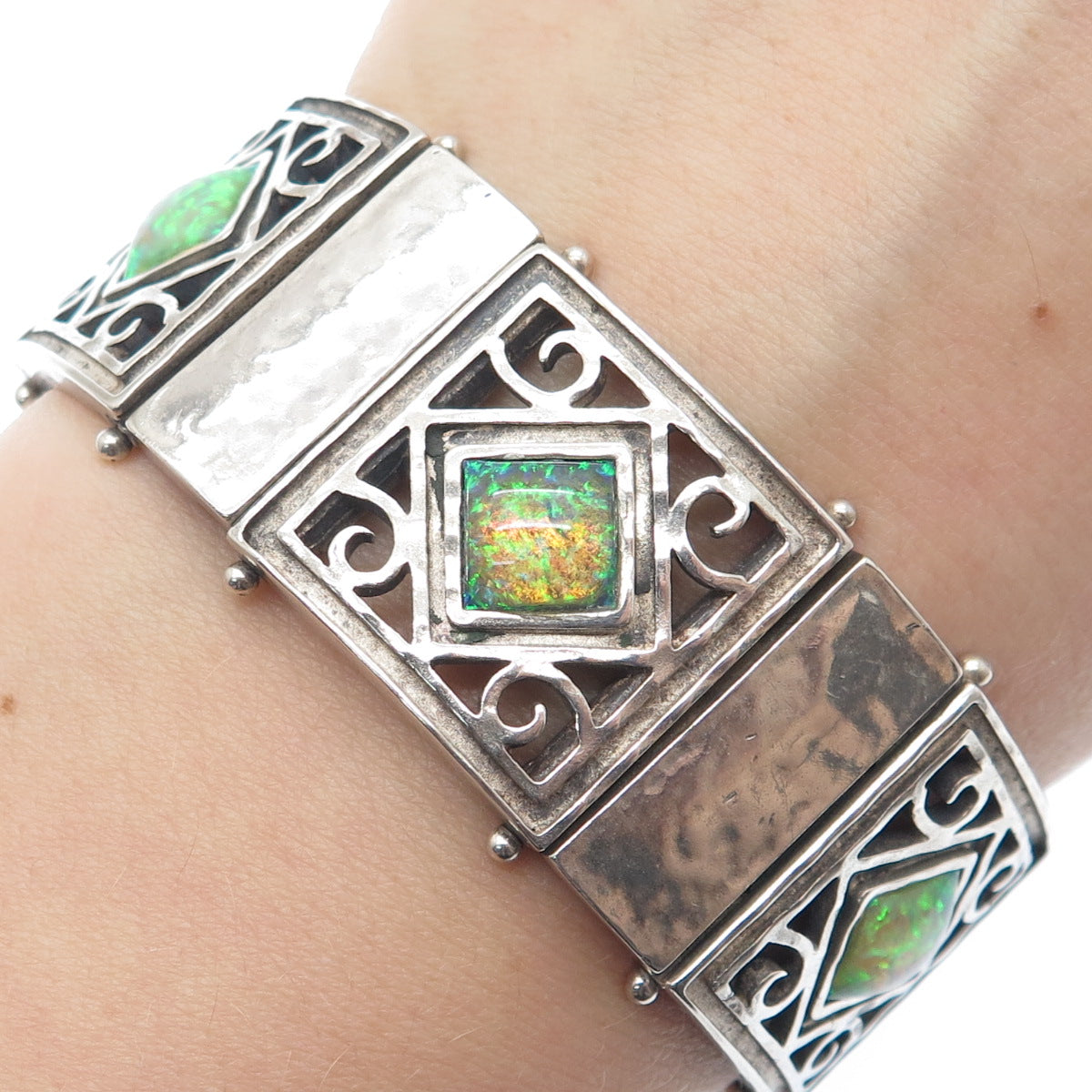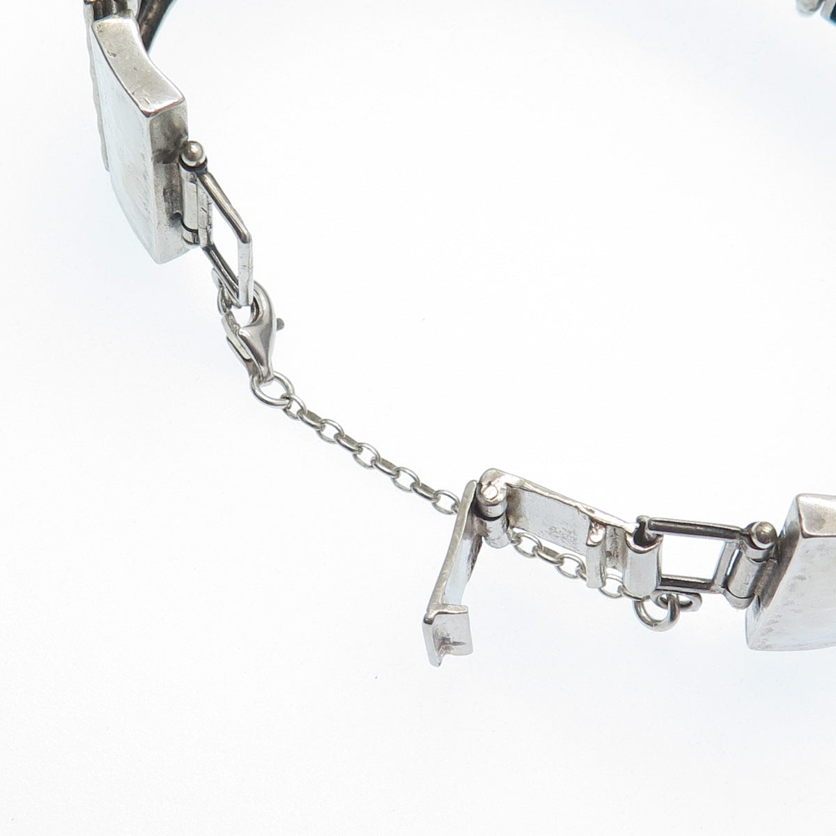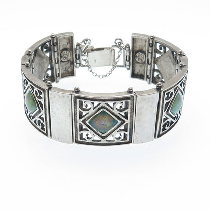 925 Sterling Vintage TL Israel Real Opal Hammered Panel Link Bracelet 7.5"
