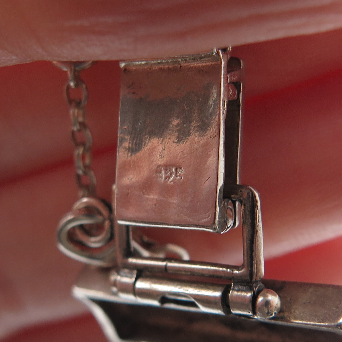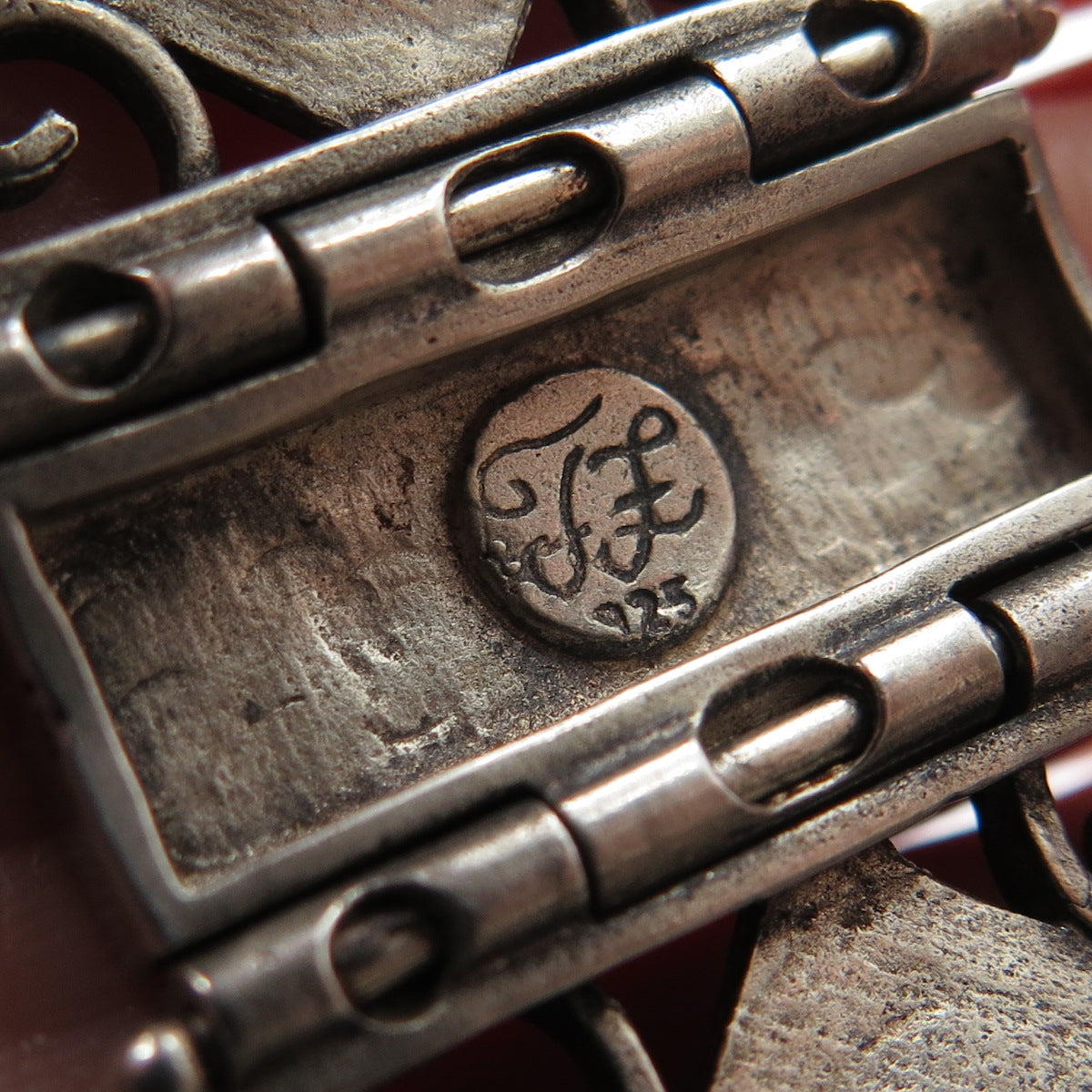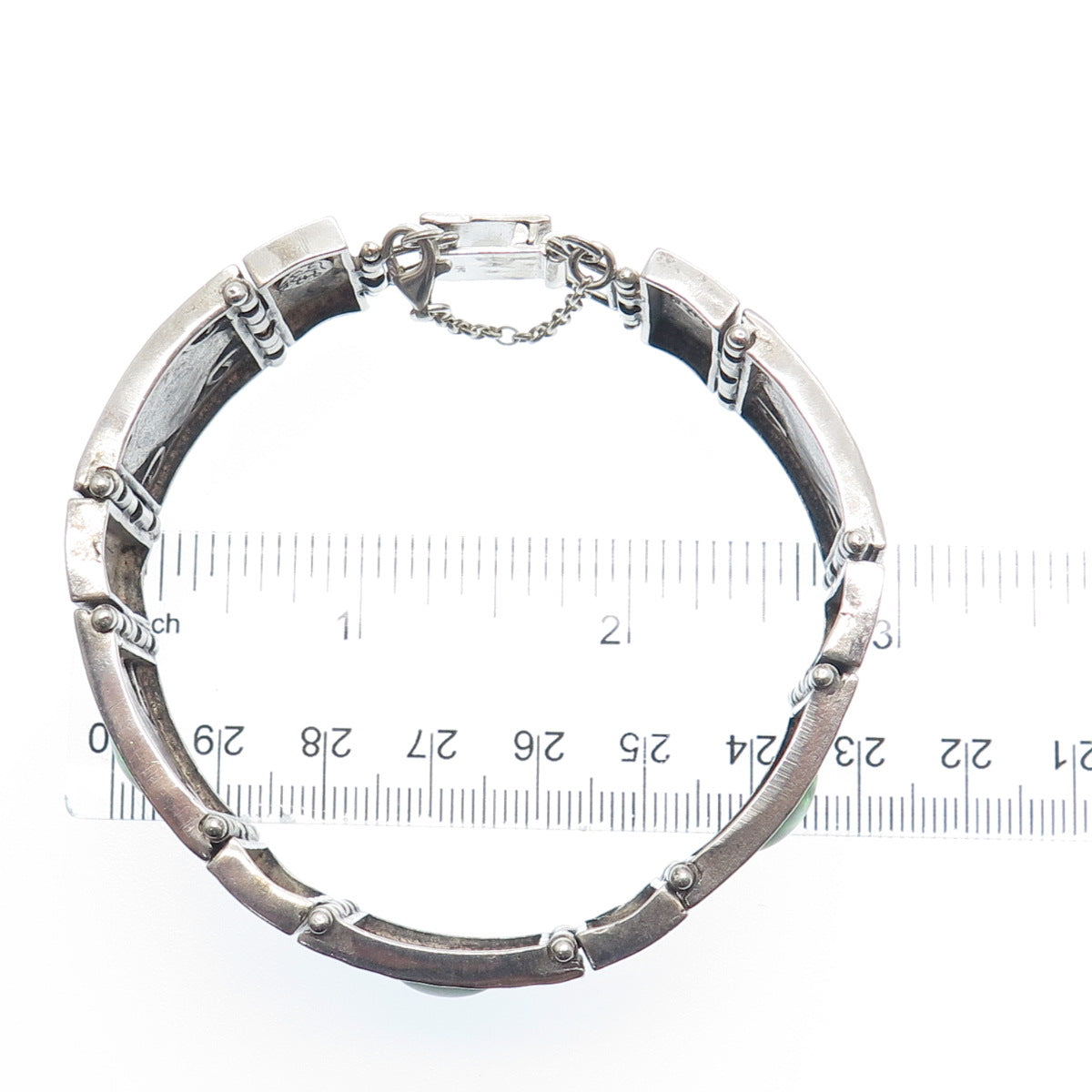 925 Sterling Vintage TL Israel Real Opal Hammered Panel Link Bracelet 7.5"