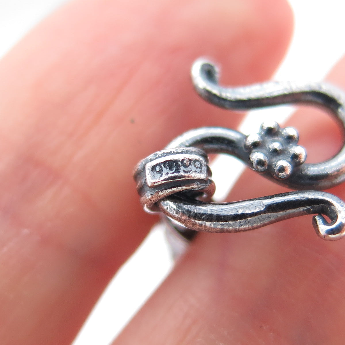 999 Fine Silver Vintage Oxidized Floral Beaded Chain Heavy 116.8g Necklace 20”