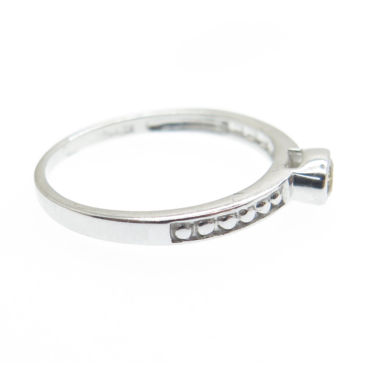 ADI 925 Sterling Silver Oval-Cut Checkered Citrine Gemstone Dotted Ring Size 8