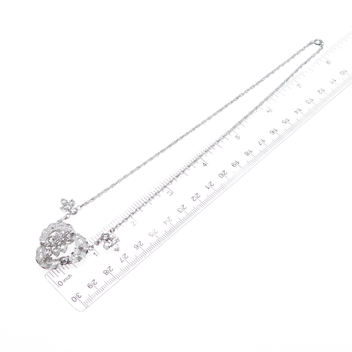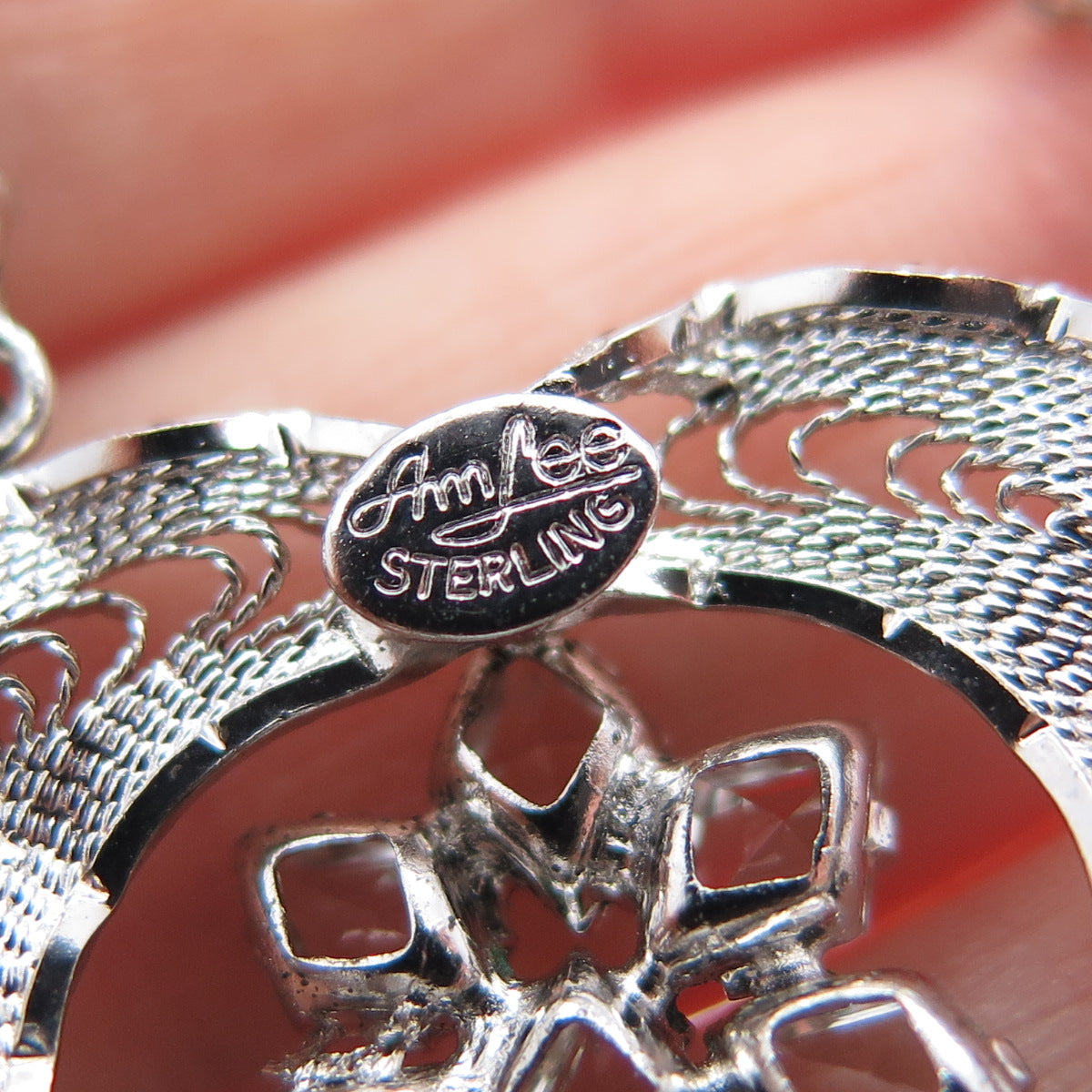 AM LEE 925 Sterling Silver Antique Art Deco Rhinestone Filigree Necklace 16"
