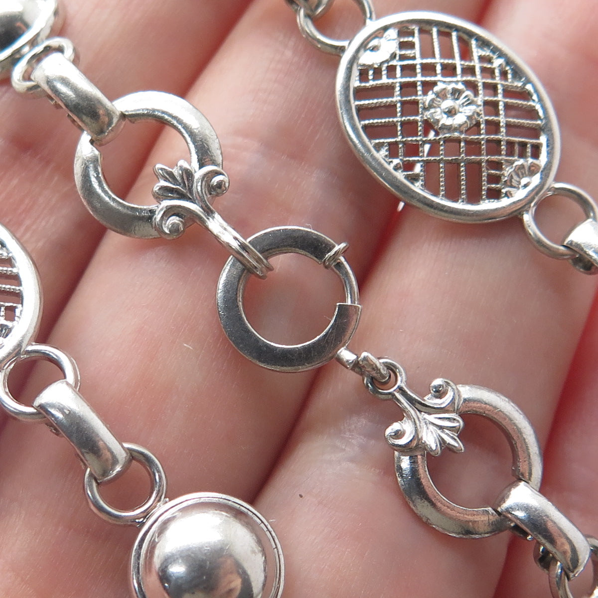 AMCO 925 Sterling Silver Antique Art Deco Floral Filigree Chain Necklace 16"