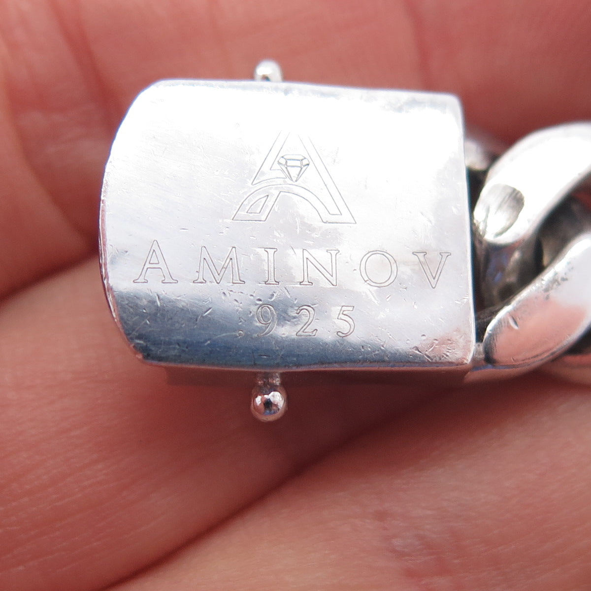 AMINOV 925 Sterling Silver Heavy 55.5g Hollow Cuban Link Bracelet 8.75"