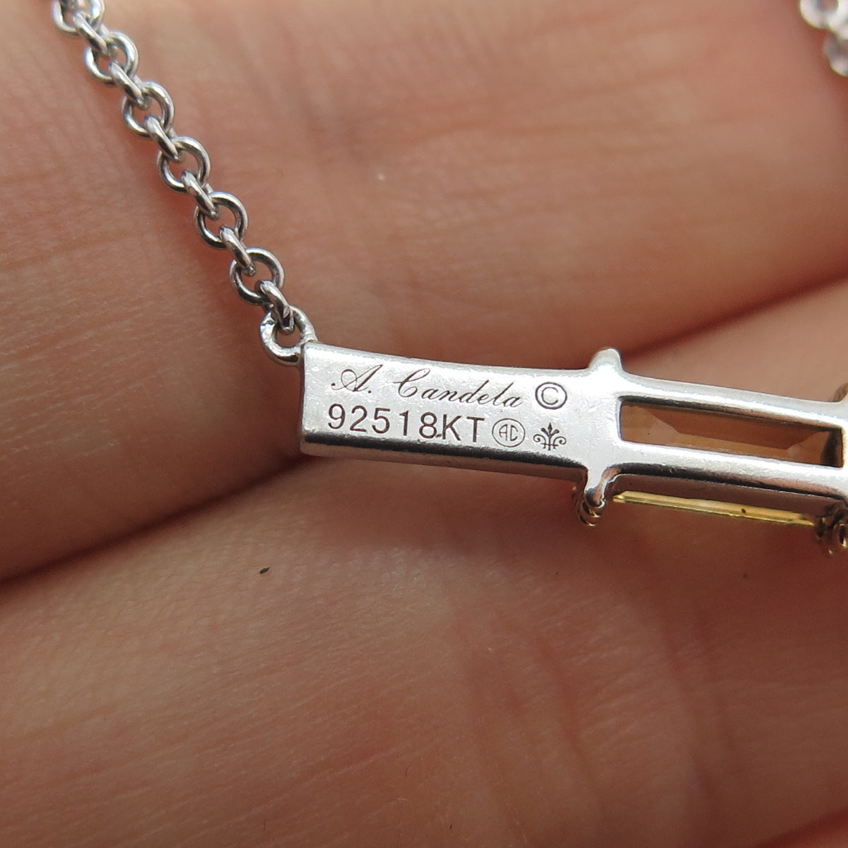 ANDREA CANDELA 925 Sterling Silver 18K Gold Vintage Real Citrine Necklace 16-18"