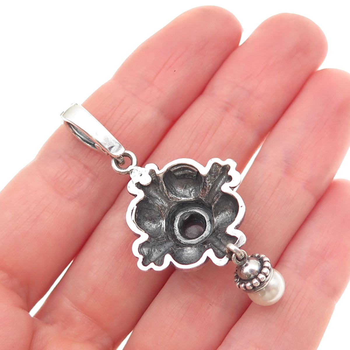 Anita Selinger Sterling Silver 14K Gold Vintage Real Pearl & Blue Topaz Pendant
