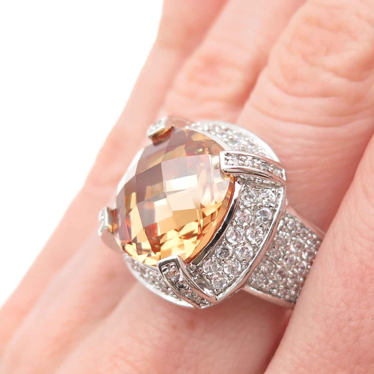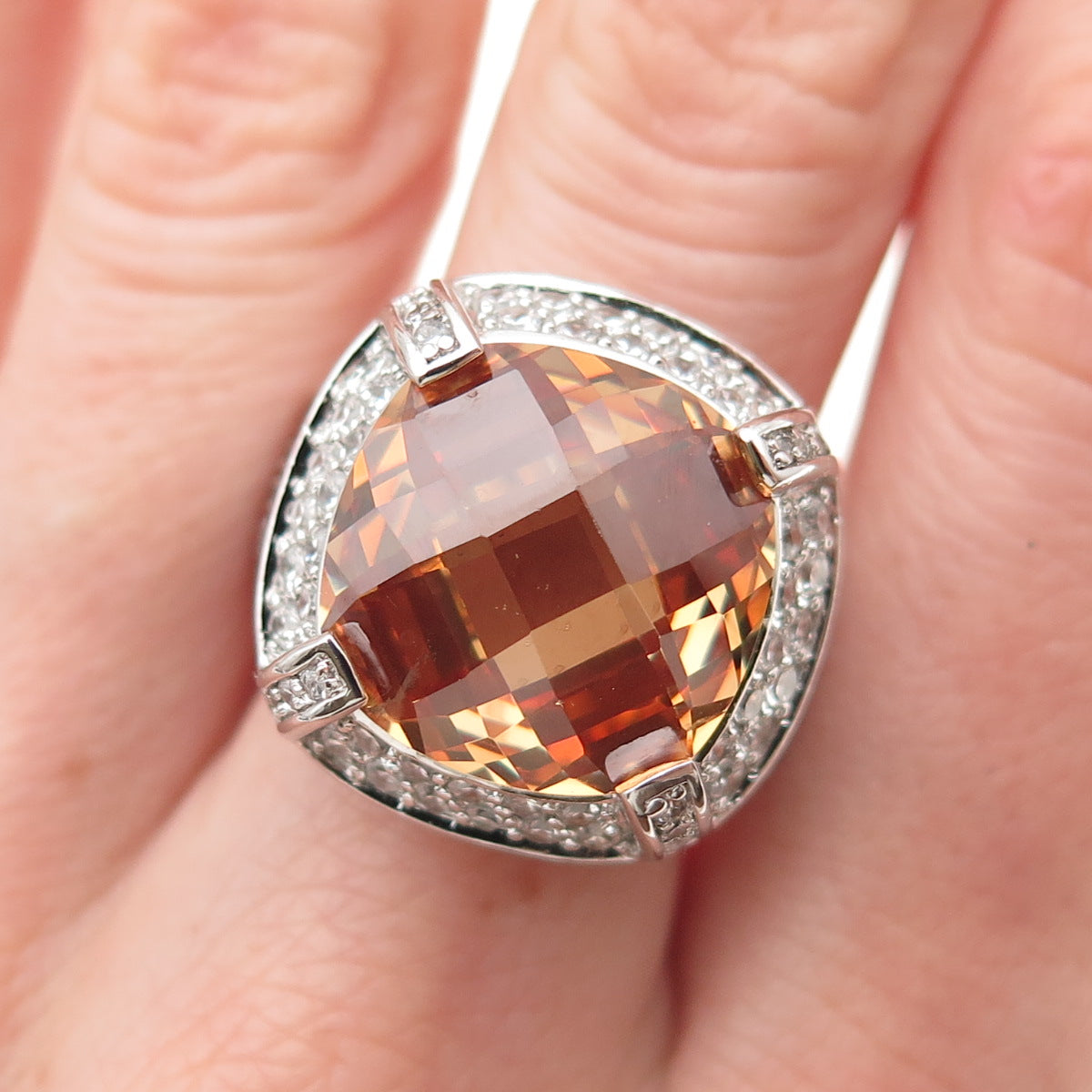 ANNIKA WITT 925 Sterling Silver Champagne & White C Z Ring Size 7.5