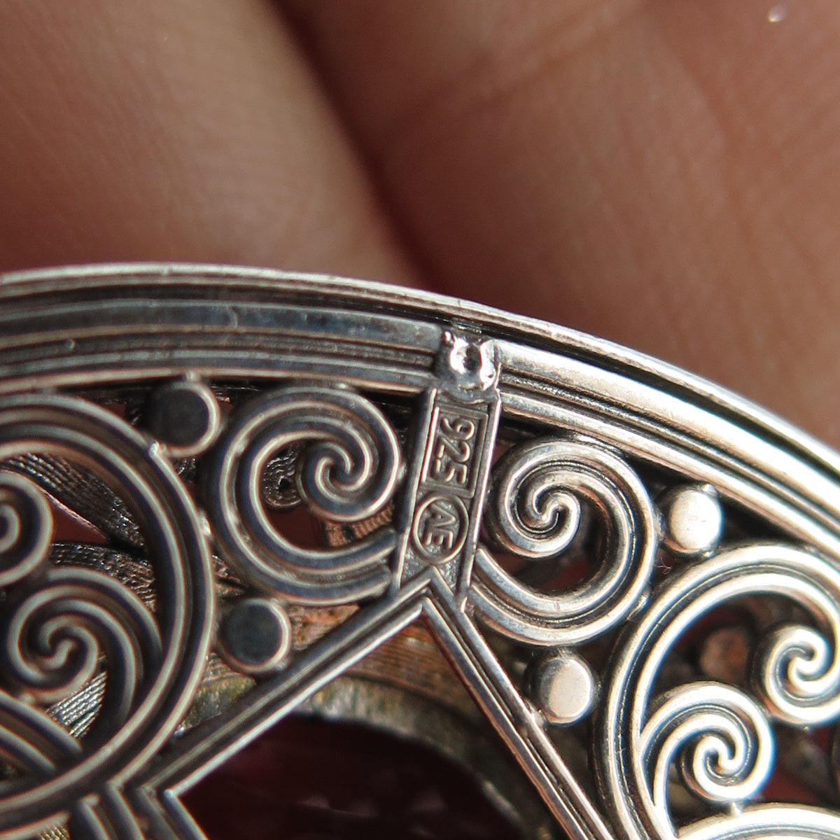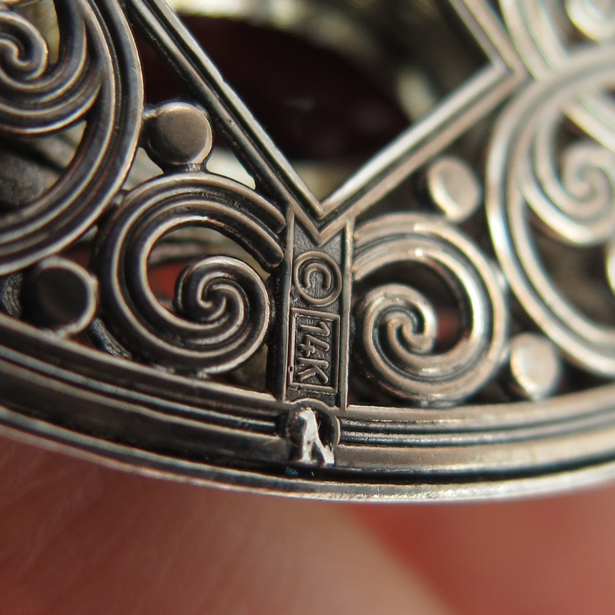 ART'S ELEGANCE 925 Sterling Silver 14K Gold Vintage Real Red Garnet Pendant