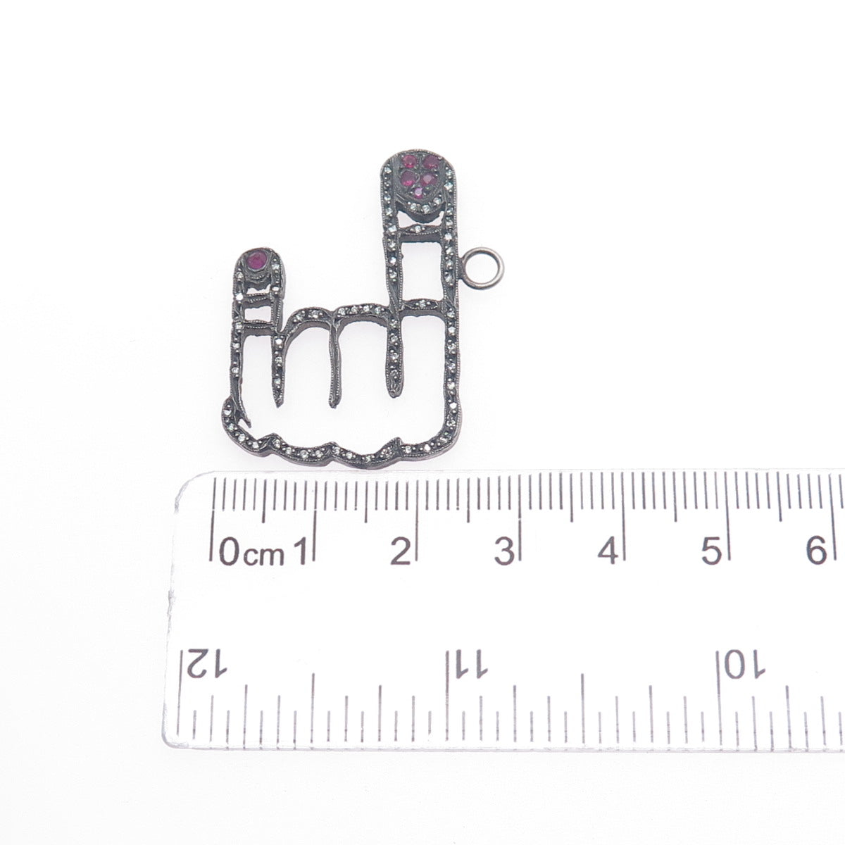 Atelier Minyon 925 Sterling Silver Real Diamond & Ruby Gesture Oxidized Pendant