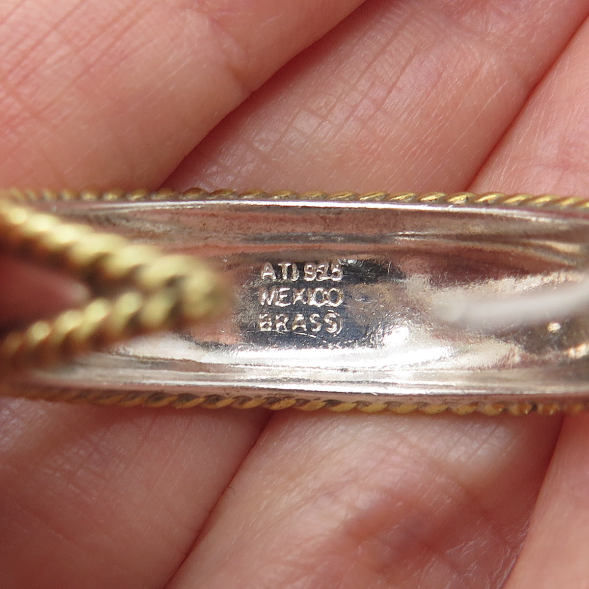 ATI ANNIKA WITT 925 Sterling Silver 2-Tone Vintage Mexico Crescent Hoop Earrings