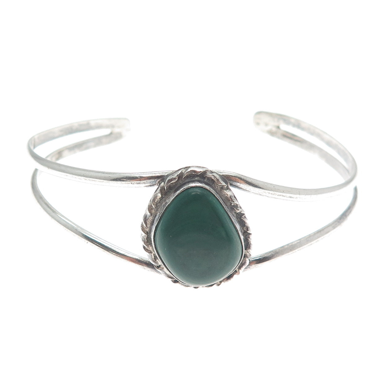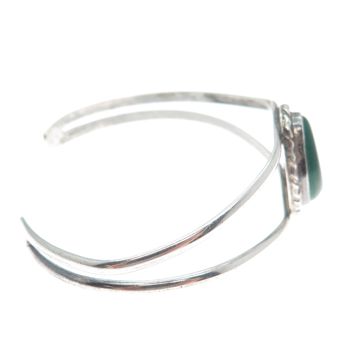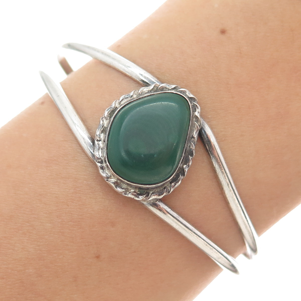 ATKINSON TRADING Old Pawn 925 Sterling Vintage Malachite Adjustable Bracelet 6"