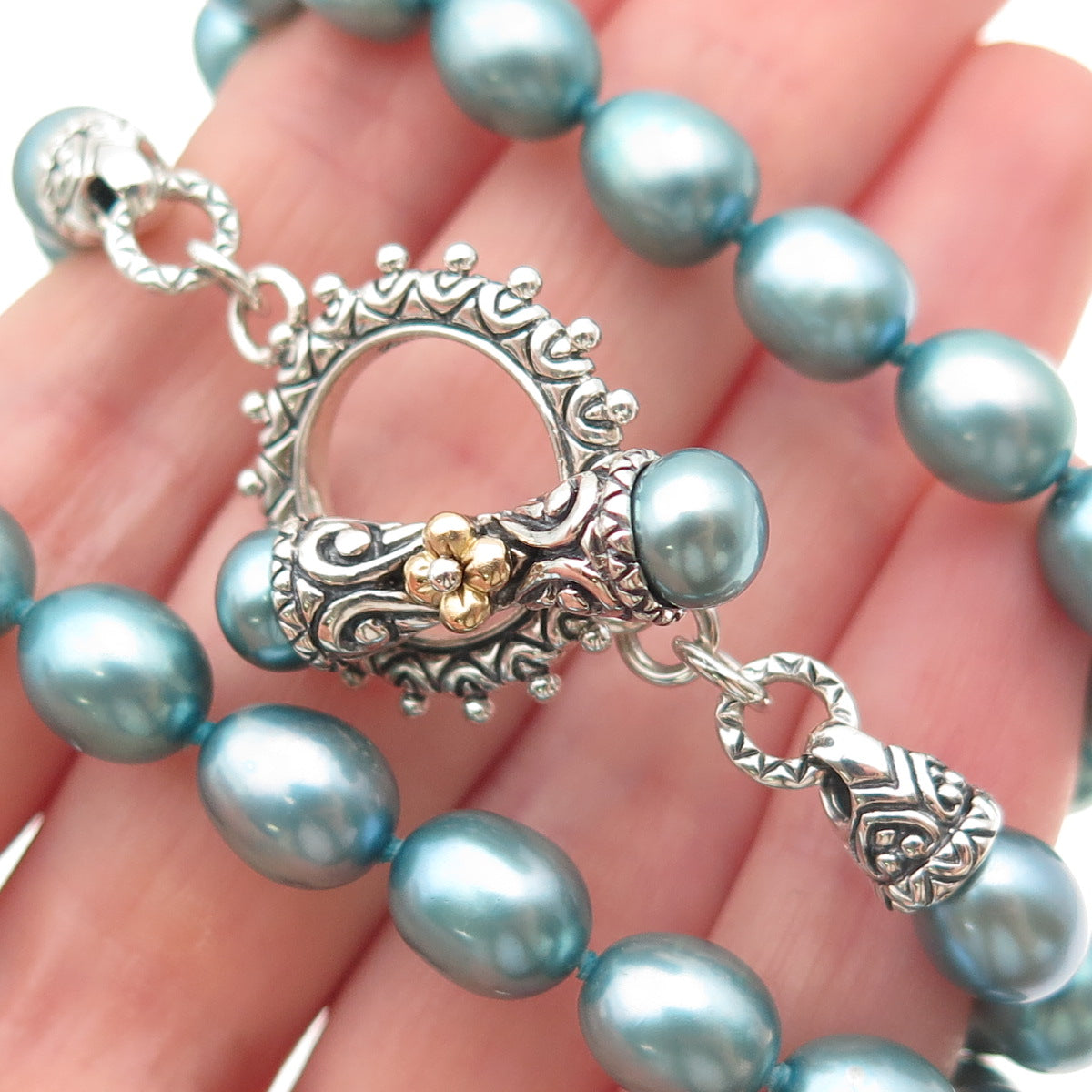 Barbara Bixby 925 Sterling Silver 18K Gold Real Pearl Beaded Necklace 18"
