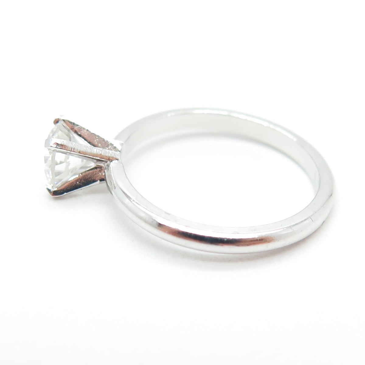 BATTIN & CO. 925 Sterling Silver Vintage Round-Cut C Z Engagement Ring Size 6
