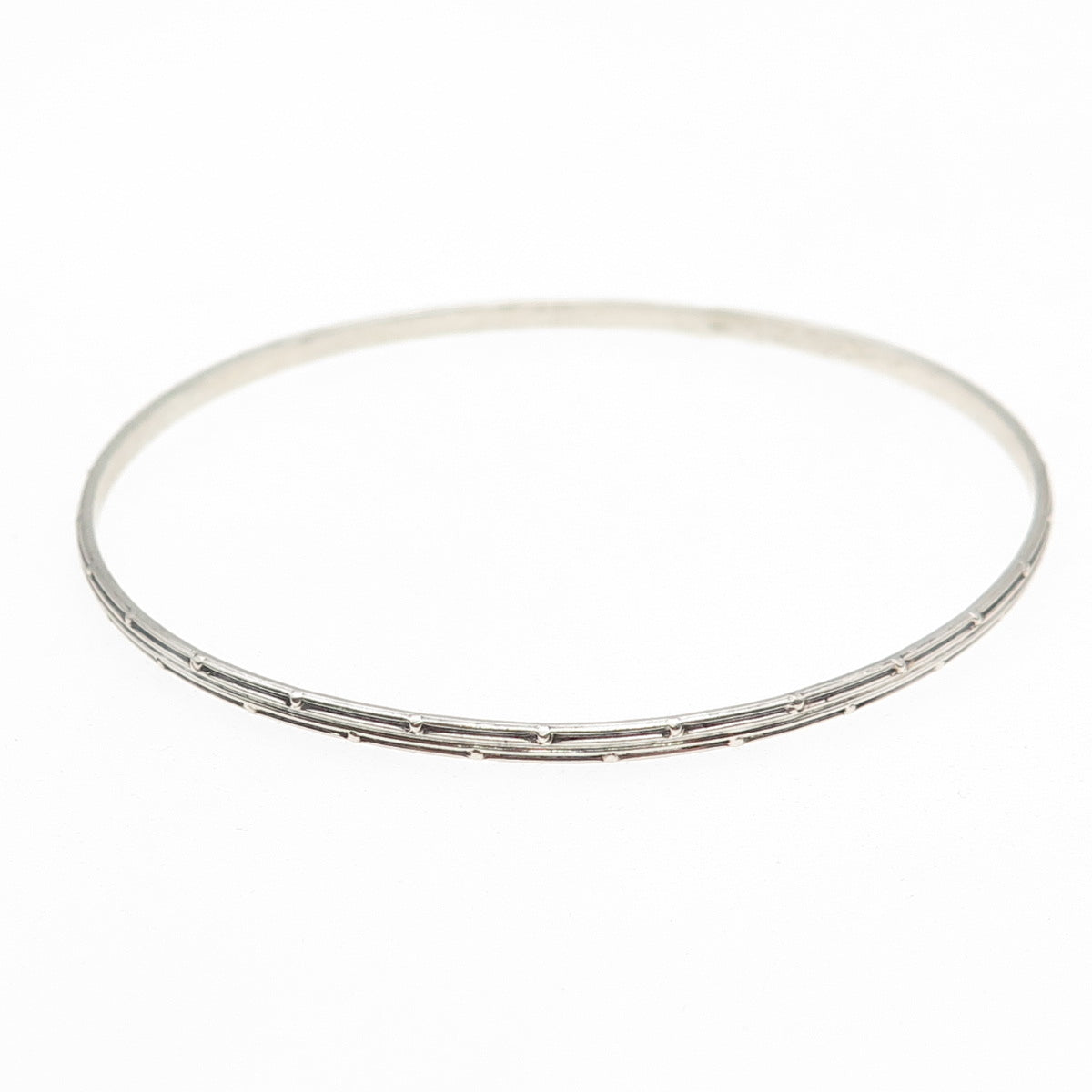 BEAU 925 Sterling Silver Antique Art Deco Dotted Oxidized Bangle Bracelet 7.75"
