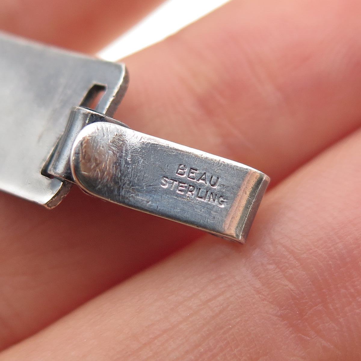 BEAU 925 Sterling Silver Antique Art Deco Flower Oxidized Panel Link Bracelet 7"