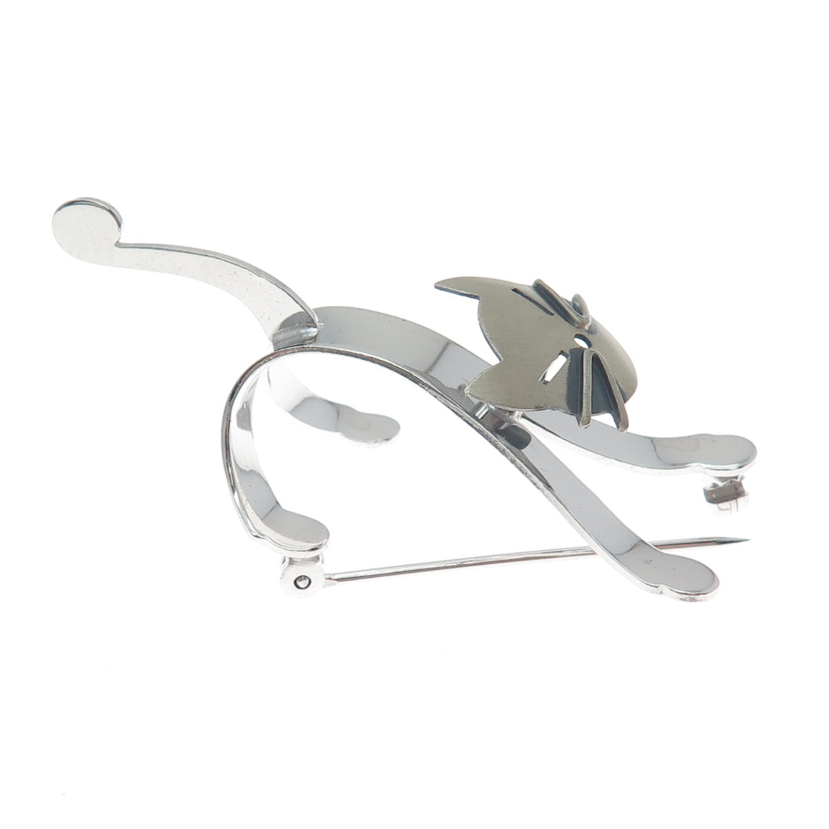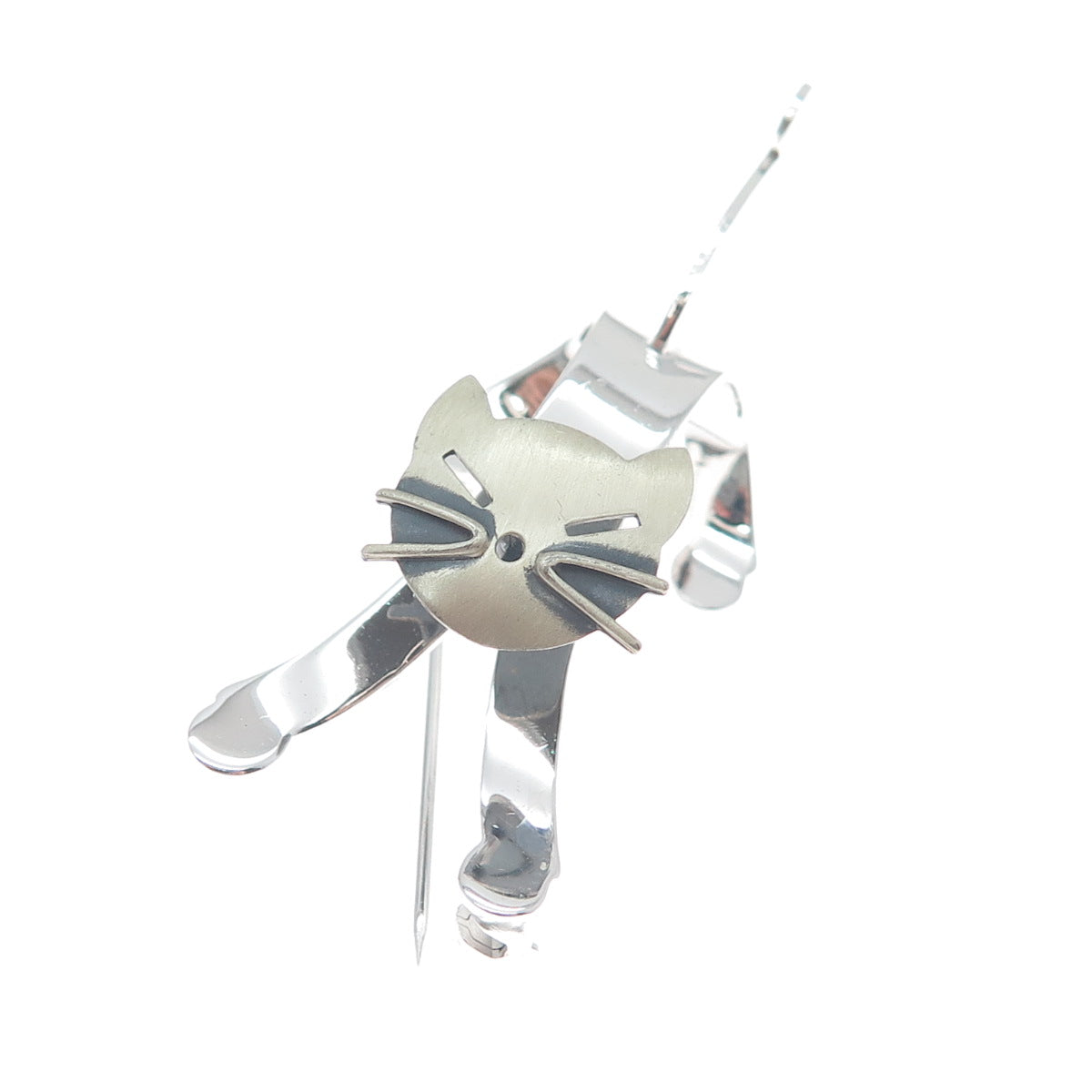 BEAU 925 Sterling Silver Vintage Modernist Cat Pin Brooch