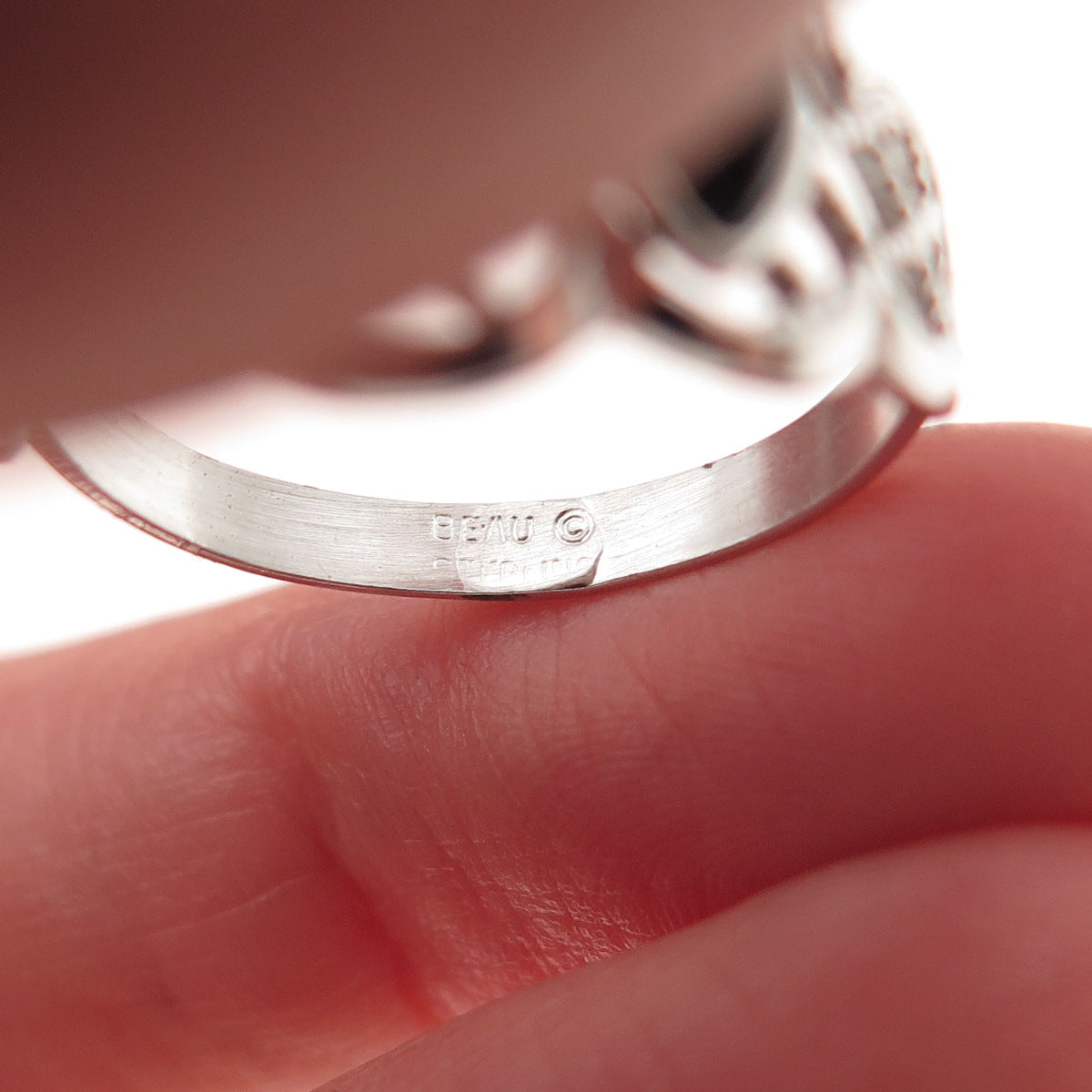 BEAU 925 Sterling Silver Vintage Real Black Onyx Modernist Ring Size 8