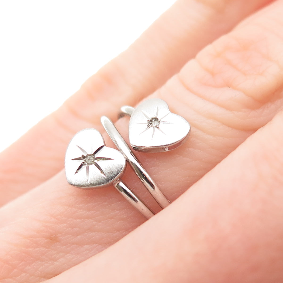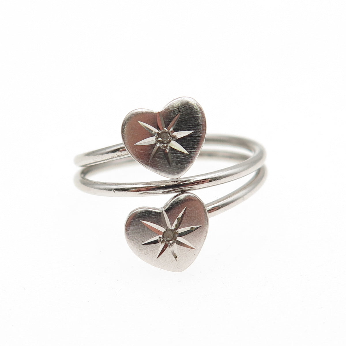 BEAU 925 Sterling Silver Vintage Real Diamond Heart Spiral Ring Size 5.5