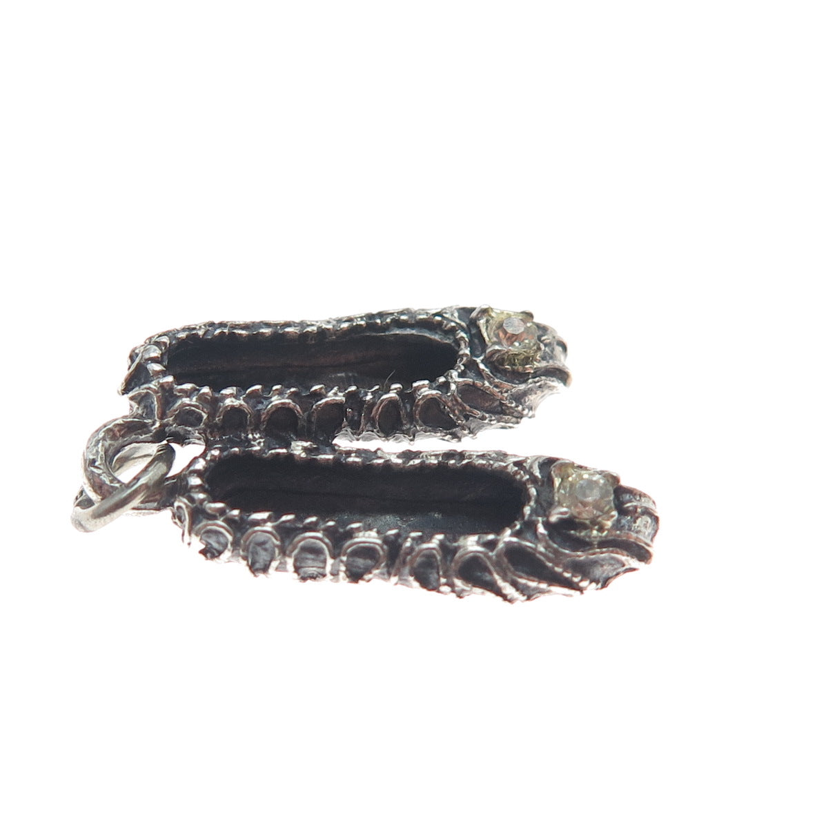 BEAU 925 Sterling Silver Vintage Rhinestone Ballerina Shoes Minimalist Pendant