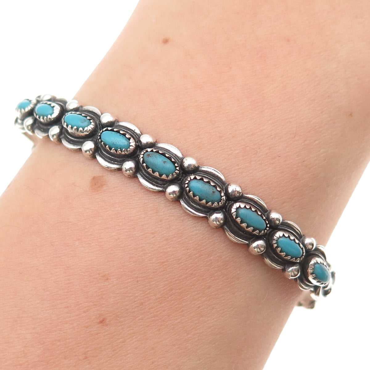 Bell Trading Post Old Pawn Sterling Vintage Turquoise Adjustable Bracelet 6.25"