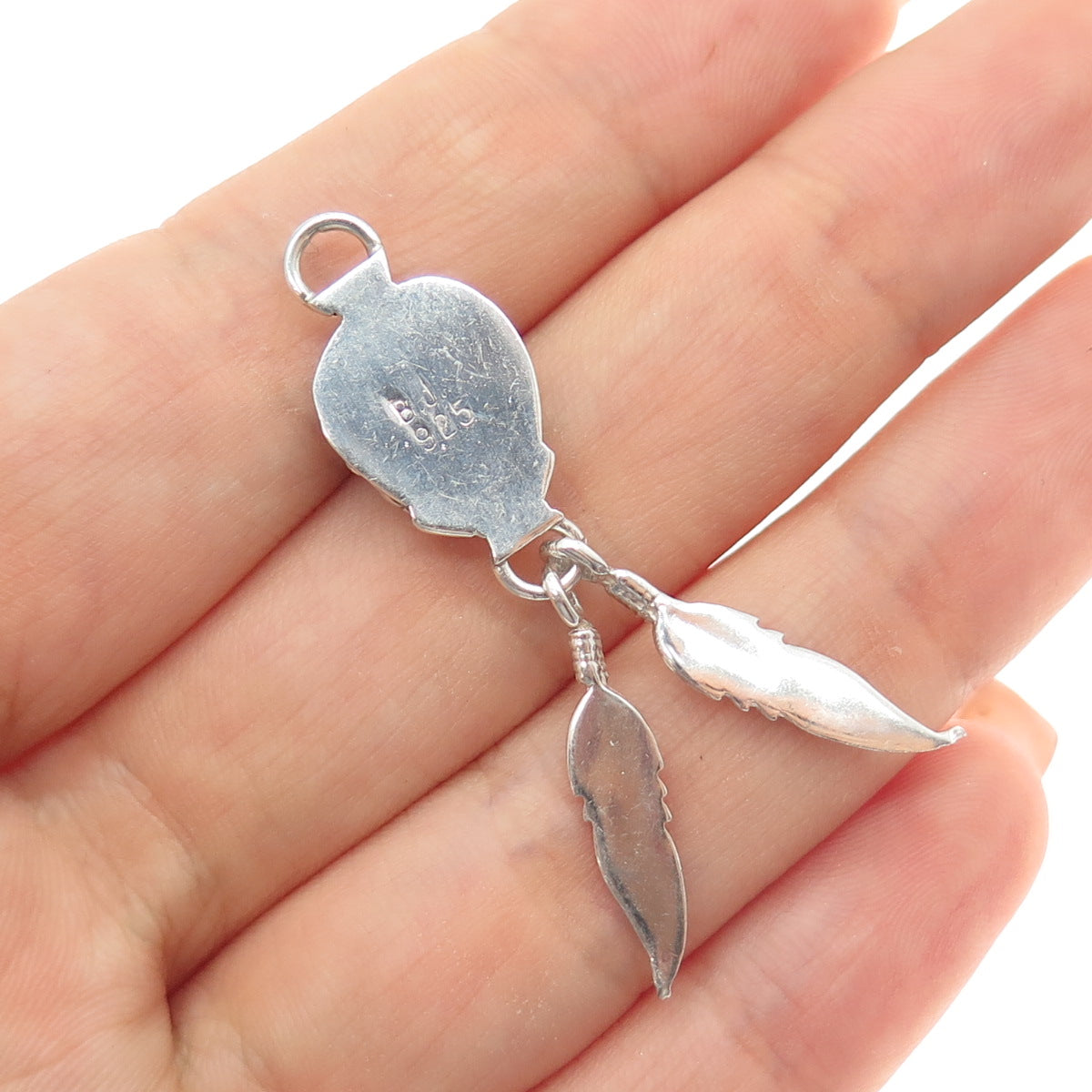 Benjamin James Navajo Old Pawn 925 Sterling Vintage Black Onyx Feather Pendant