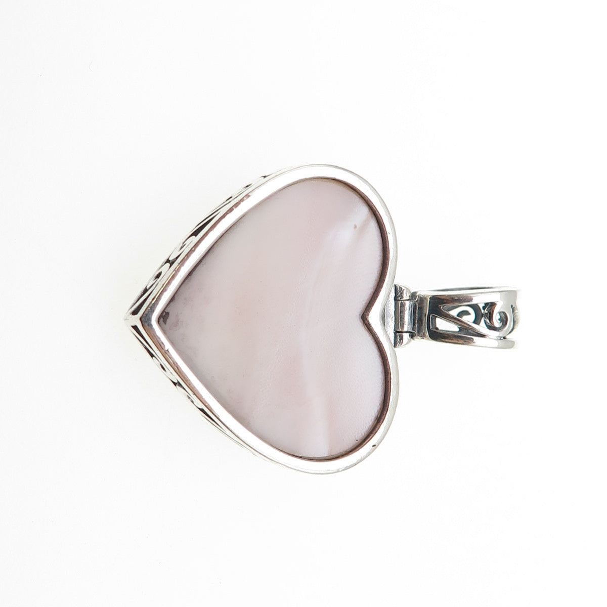 BOMA 925 Sterling Silver Vintage Real MOP Ornate Heart Charm Pendant