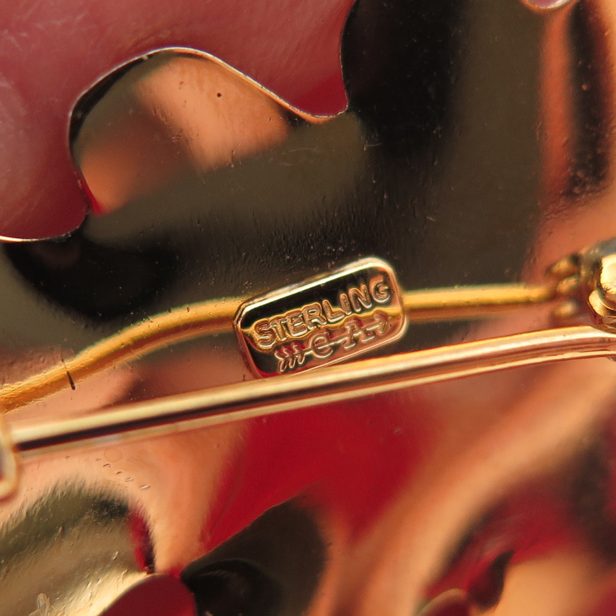 Carl Art 925 Sterling Silver Gold Plated Vintage Oak Leaf Pin Brooch