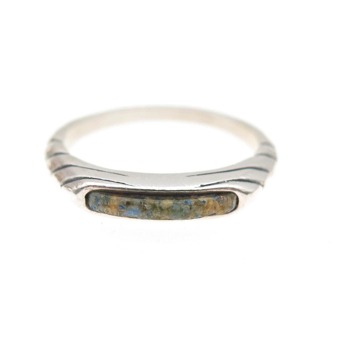 CAROLYN POLLACK 925 Sterling Vintage Real Turquoise Inlay Stackable Ring Size 7