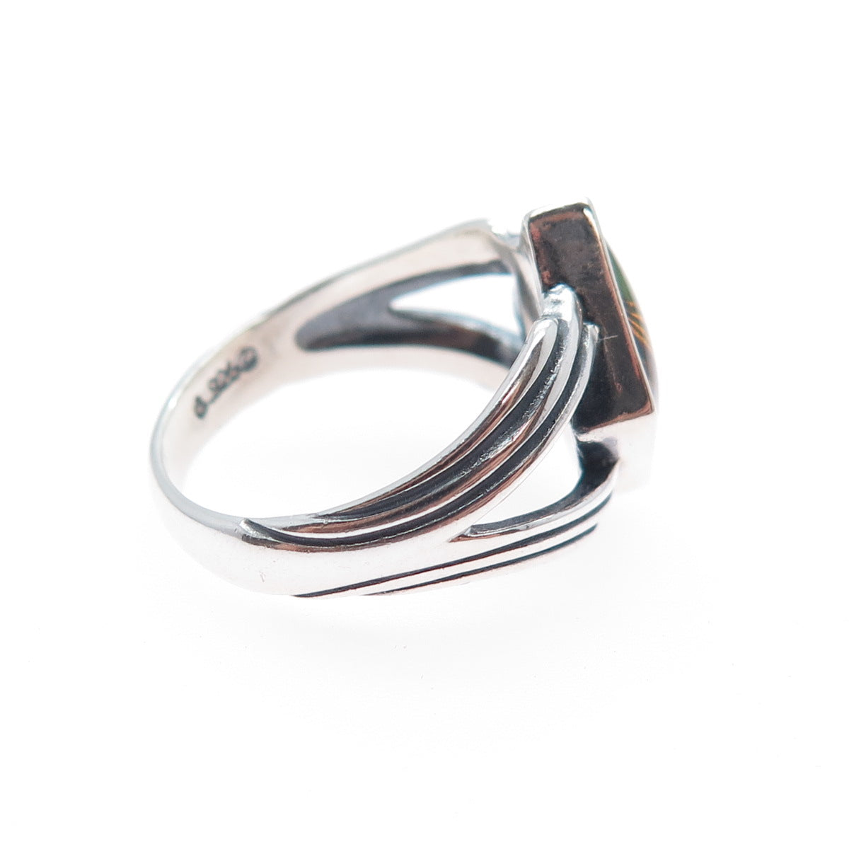 CAROLYN POLLACK Sterling 2-Tone Vintage Turquoise & Jasper Inlay Ring Size 6.25