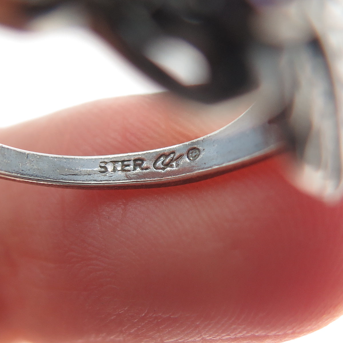 CAROLYN POLLACK Sterling Silver Vintage Real Amethyst Grape Leaf Ring Size 7.5