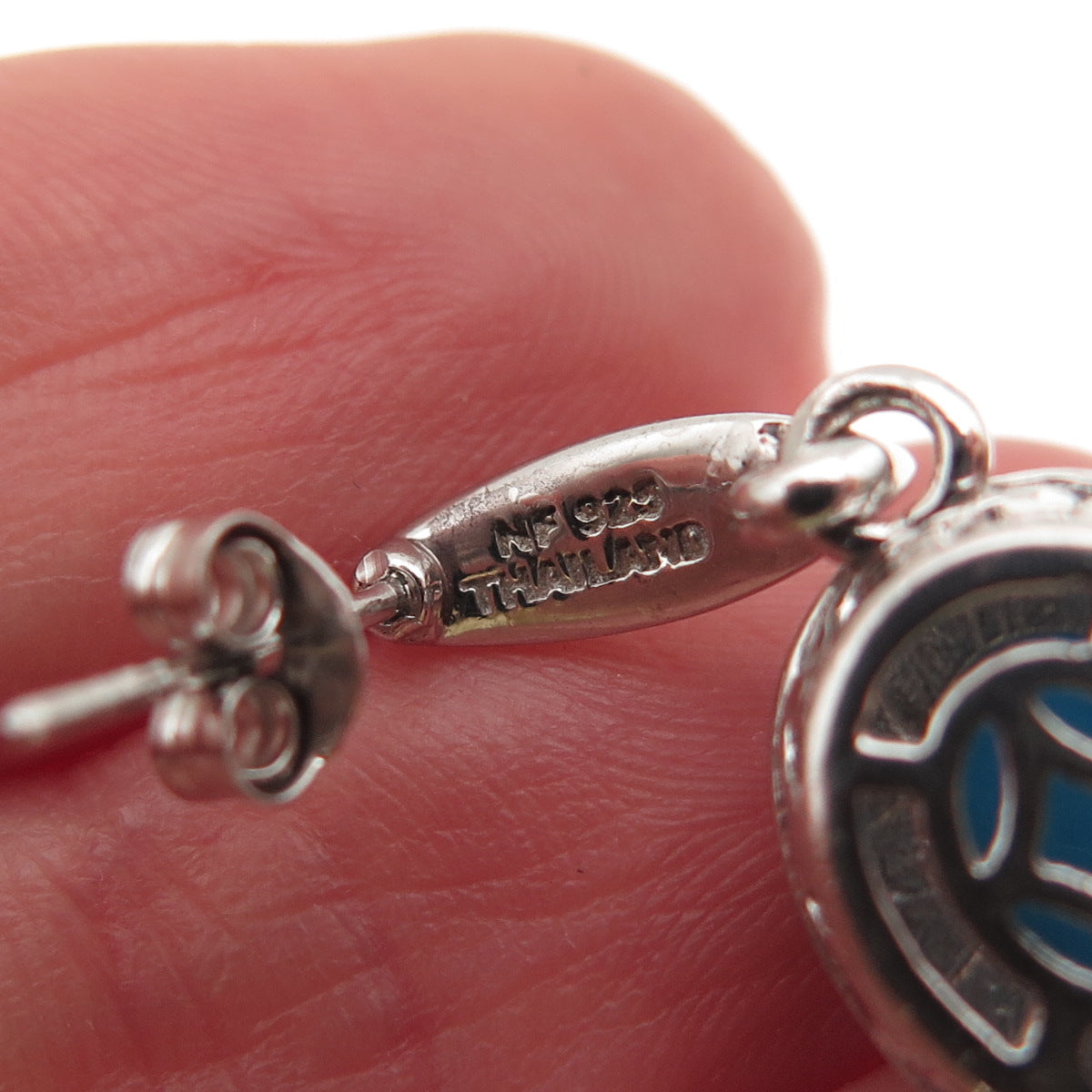 Chapal Zenray 925 Sterling 2-Tone Real Sleeping Beauty Turquoise Dangle Earrings