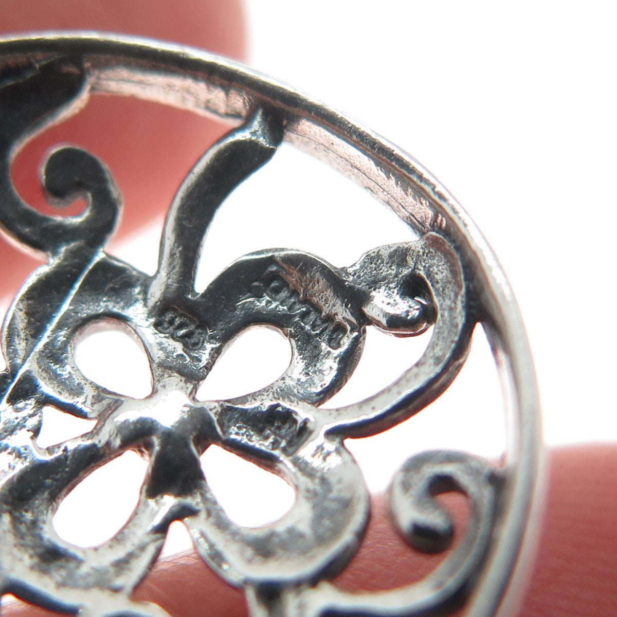 CHAPAL ZENRAY 925 Sterling Silver Vintage Ornate Flower Teardrop Dangle Earrings